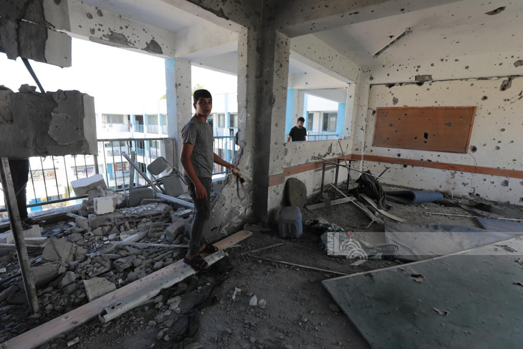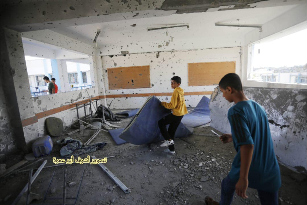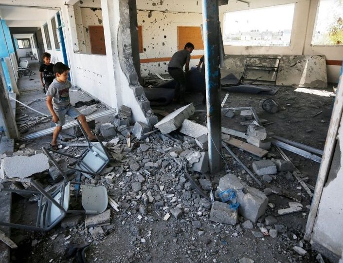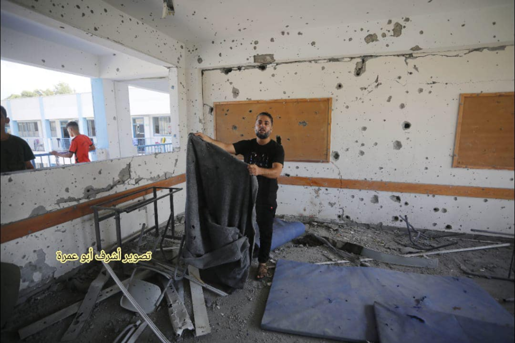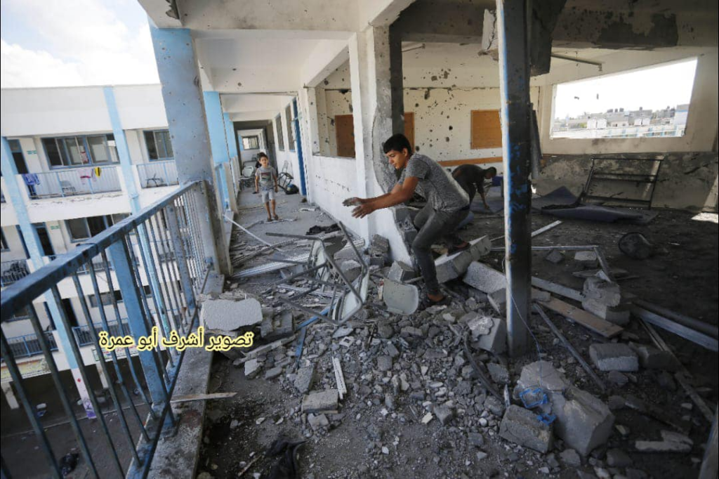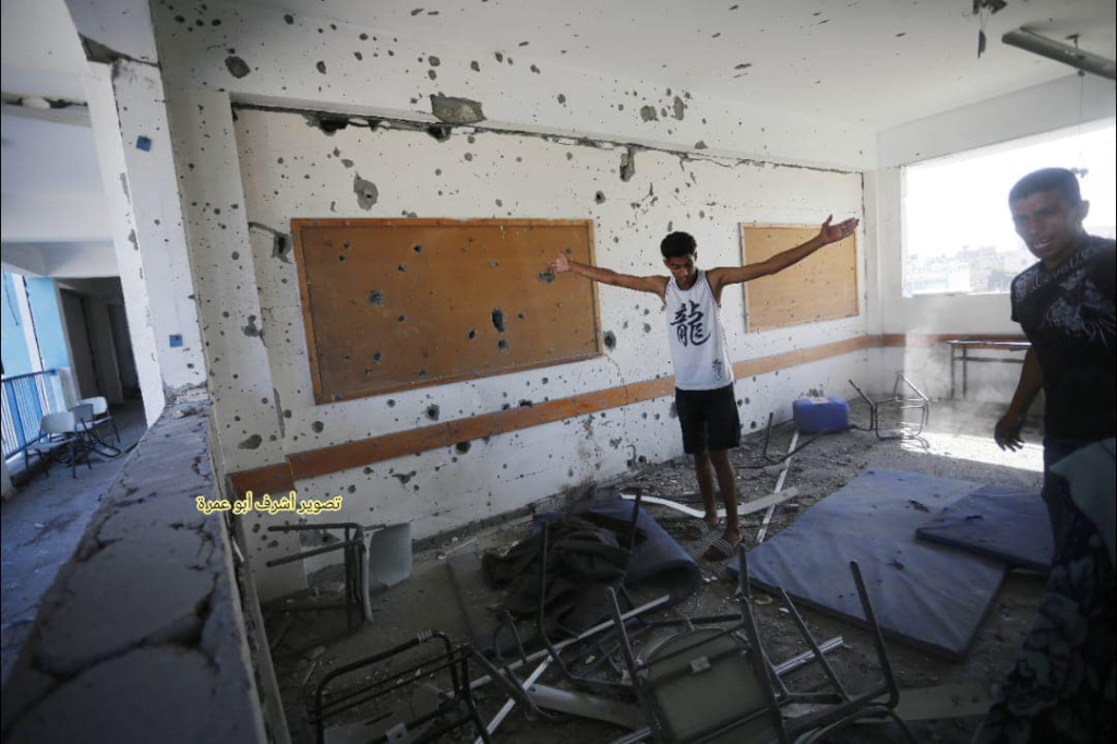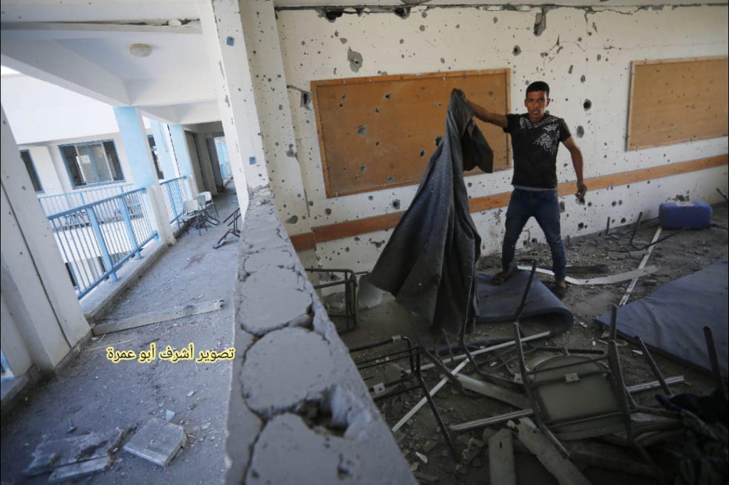 WAFA News Agency and Facebook user “Going Back to Palestine” shared the images showing the aftermath of the deadly strike: the walls of the school with large holes in them, lots of broken furniture and rubble. A graphic video posted by Electronic Al-Nadaa Portal on Facebook showed bodies being carried out of the school.