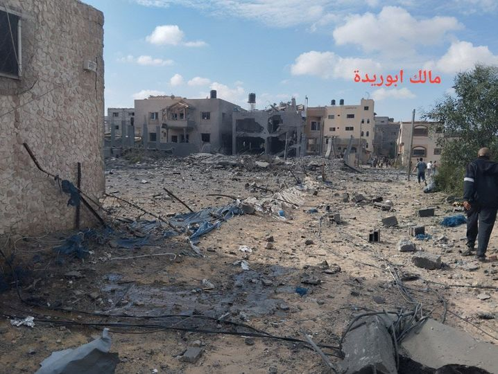 On Tuesday, 17th October, 2023, an alleged Israeli bombing hit the Al-Qahwaji family house located east of the Lailat Al-Omar hall in the Abu Shahla neighborhood area in Bani Suhaila, east of the town of Khan Yunis, reportedly injuring four civilians. The attack completely destroyed the house belonging to Mahmoud Kamel Al-Qahwaji. A number of casualties reportedly arrived at Nasser Hospital, though journalist Ahmad Qudeih claimed they were minor.