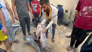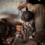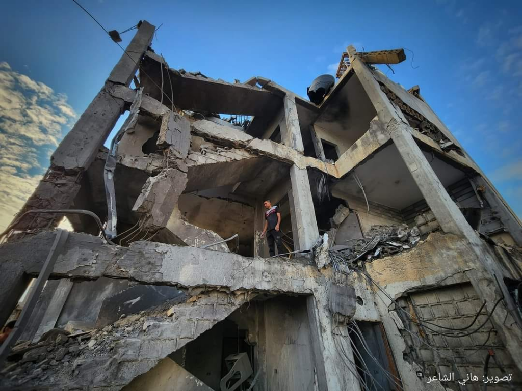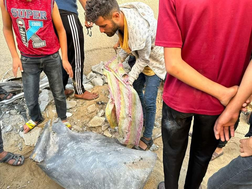 A source on social media, Sufyan Akkad, shared images of the severely damaged building, rescue efforts, the injured trapped beneath the rubble, and bodies of those killed in shrouds. Shehab Agency shared the images of “explosive barrels dropped […] on the al Lamdani and al Jabri families in Khan Yunis camp.” Misbar News “learned from eyewitnesses that some of the targeted people were displaced from the northern Gaza Strip and Gaza City.” Sources did not provide any names or details of the victims, or the number of injuries.