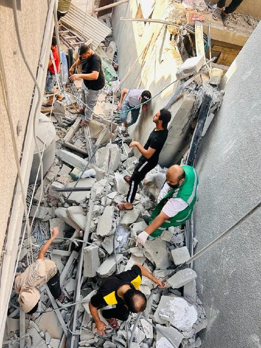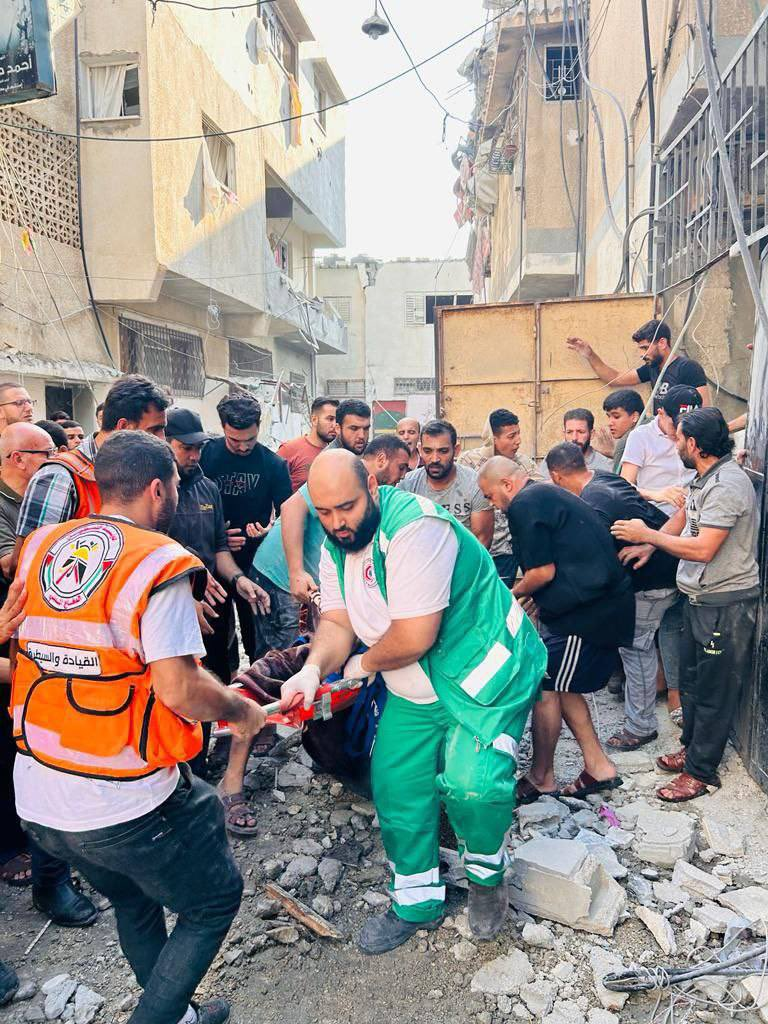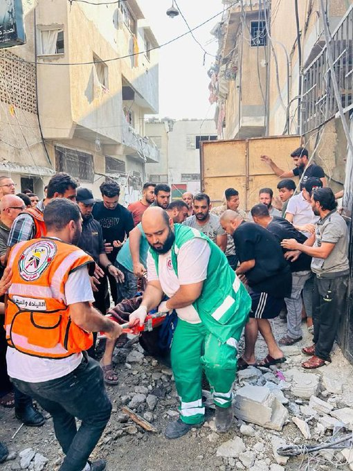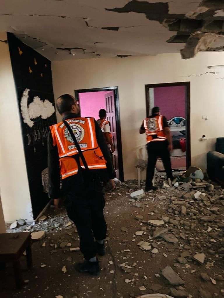 Numerous Twitter/X accounts posted images showing Civil Defense and medical services rescuing and attending to those injured in the strike on the Hawass home, with Deir Abu Mishal specifically mentioning “dealing with those injured”. The images show multiple individuals were injured, but the exact amount of injuries remains unclear.
