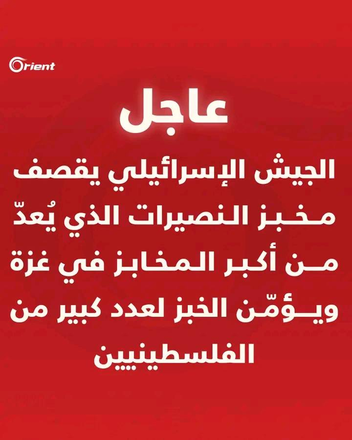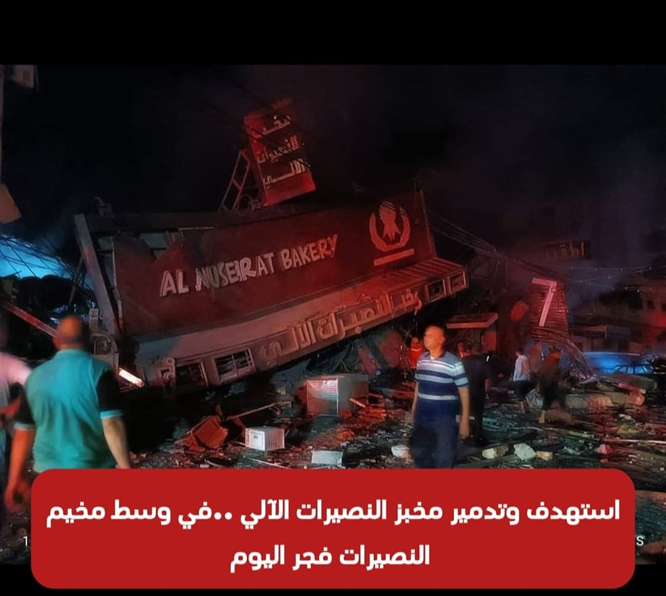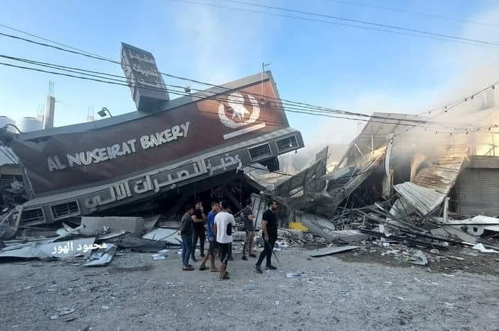 At 1:34 AM on Wednesday October 18th 2023, at least three young civilian men, including the owner of a bakery, were reported killed and at least 10 others were injured in an alleged Israeli airstrike on the al Nuseirat automated bakery “Al-Banna”  located in the center of Suf al-Nuseirat in the central Gaza strip. Orient News and Araby TV reported that the bakery was considered one of the largest in Gaza and provided bread to a large number of Palestinians, including the displaced people and residents of the al-Nuseirat refugee camp.