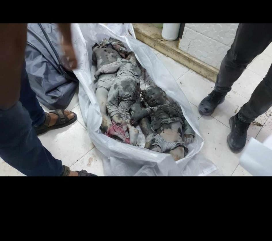 A Facebook user Dejavo Soli reshared photos depicting groups of murdered children covered in ash and dust being wrapped up in body bags, with the comment; “these are not burnt dolls and put in bags. They are all extinguished, people of Gaza. For what sin were they killed? We belong to Allah and to Him we shall return”.