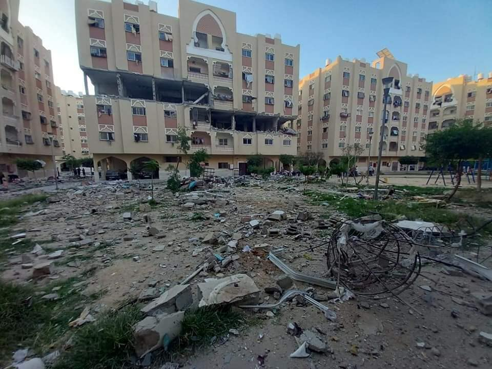 The Palestine Post and Hamad Residential City posts included multiple images of the destroyed residential apartments and damaged residential blocks. Nabd.com described the damage as significant, Palestine Post described there being “major damage” to the residential area and @ayman9323 stated that six apartments were damaged as a result of the bombing. Hamad Residential City reported that the apartment block was tower F4.