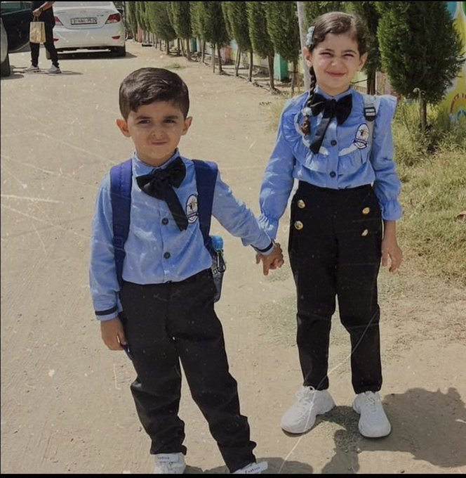 Public social media pages, such as the @GazaMartyrsTwitter account, also shared the children’s photographs, including one of the siblings holding hands dressed in school uniforms.