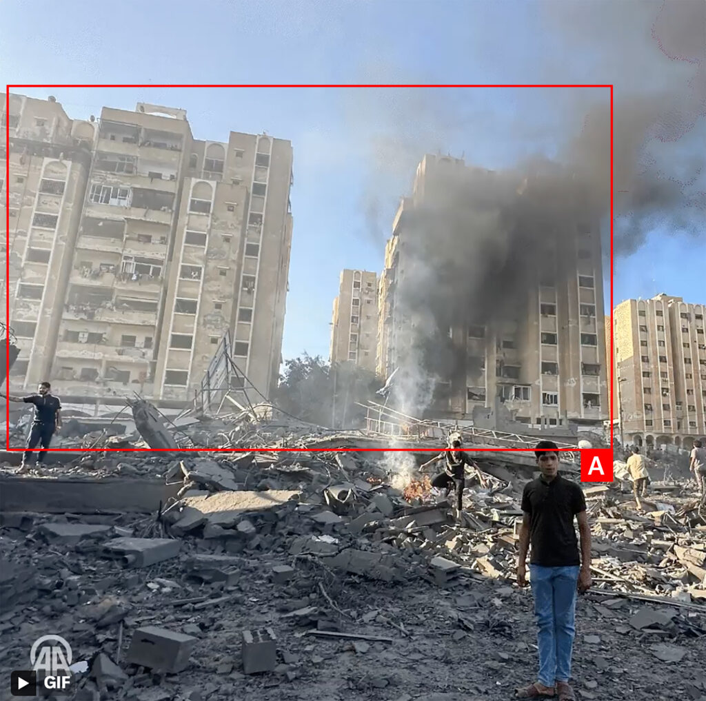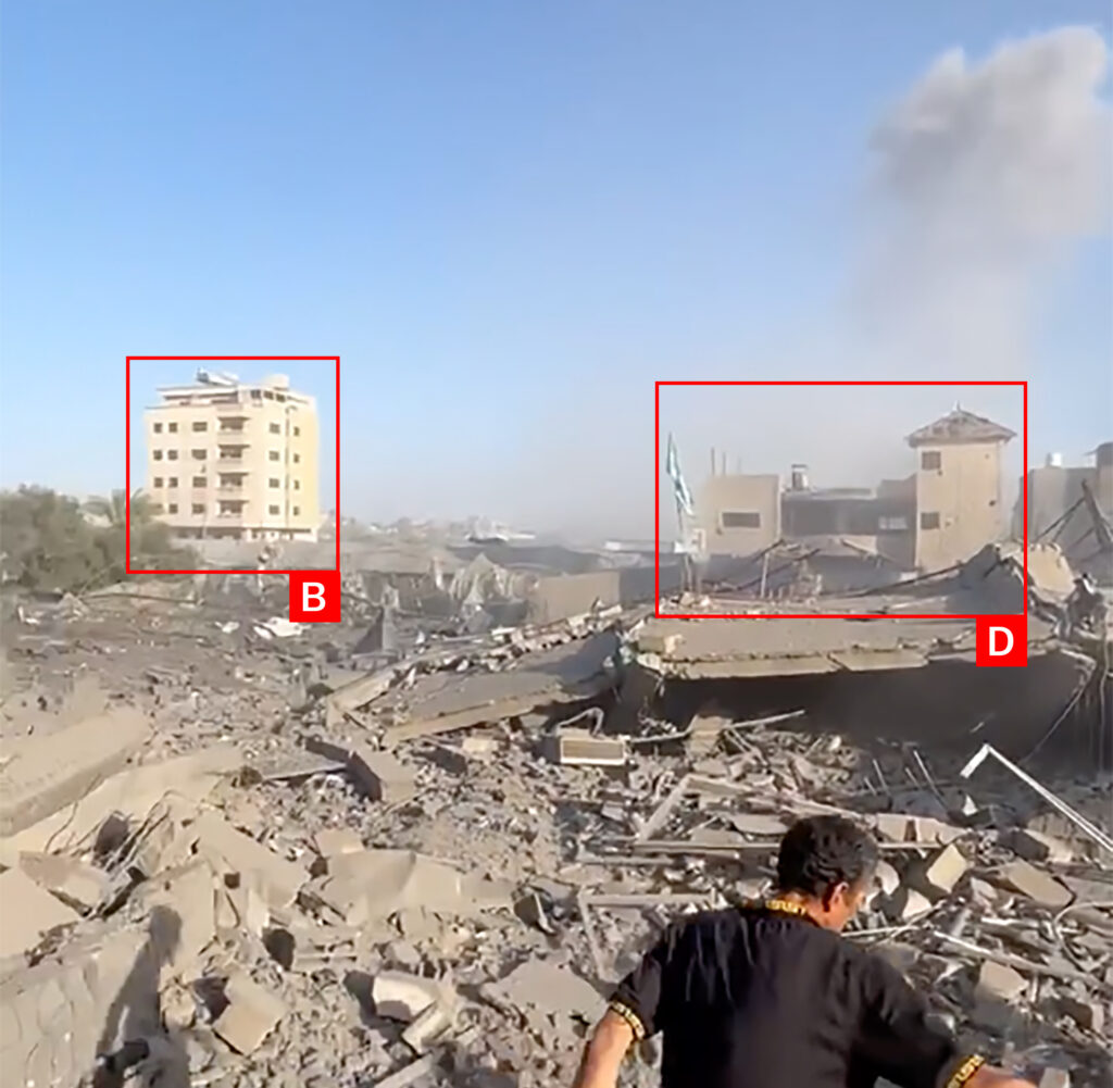 A video posted by Shorouk News on Twitter/X showed the scale of the destruction, with large craters, piles of rubble and twisted metal, fires still burning in a few places and buildings on the edge of the site being partially destroyed as well.