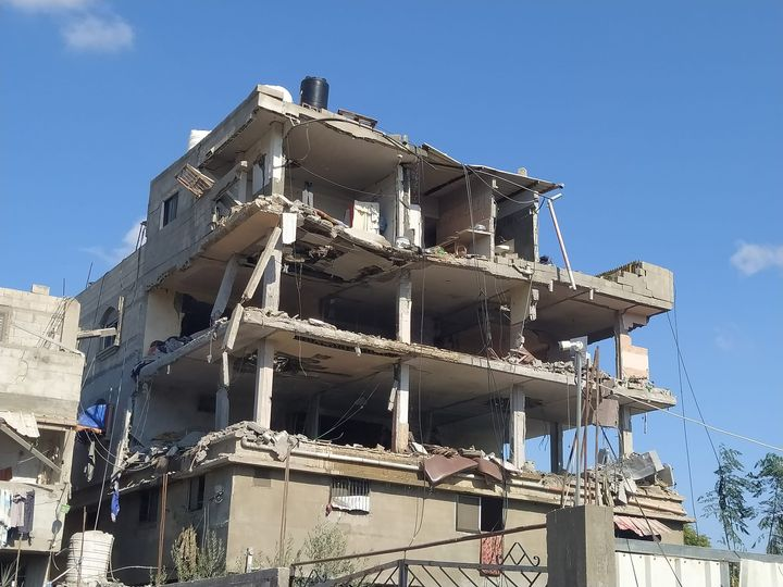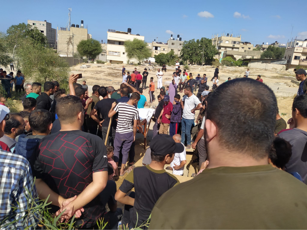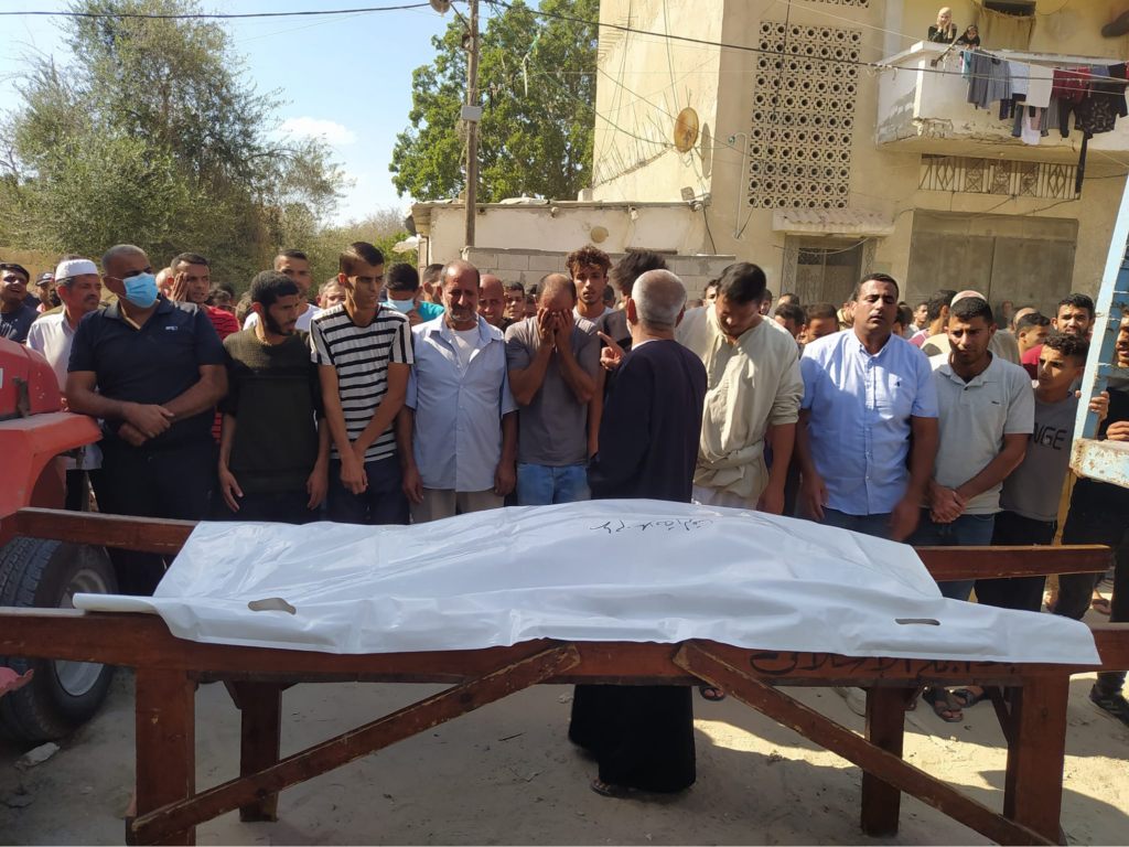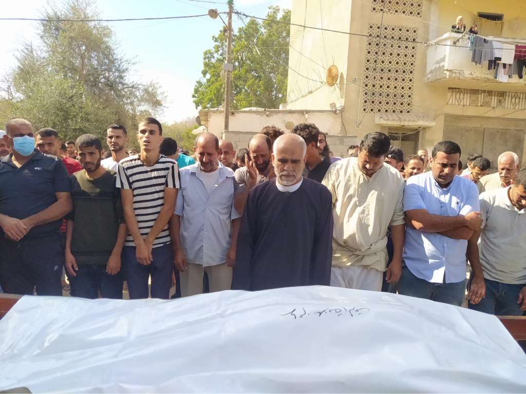 At 1:15pm Safa News reported that there were “martyrs and injuries” as a result of the bombing of the Al-Raqab family house, but did not state a specific number of casualties. A post from Alarabiya Palestine stated that a woman was killed and there were several injuries, while user “Al-Raqab Family Gathering” wrote about two injured civilians. The Al-Raqab Family Gathering page also included images of funeral prayers, showing men gathered around a body, covered by a sheet. Given the reference to multiple ‘martyrs’, Airwars has included a maximum casualty range of two civilian fatalities.