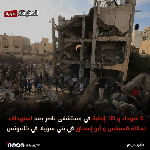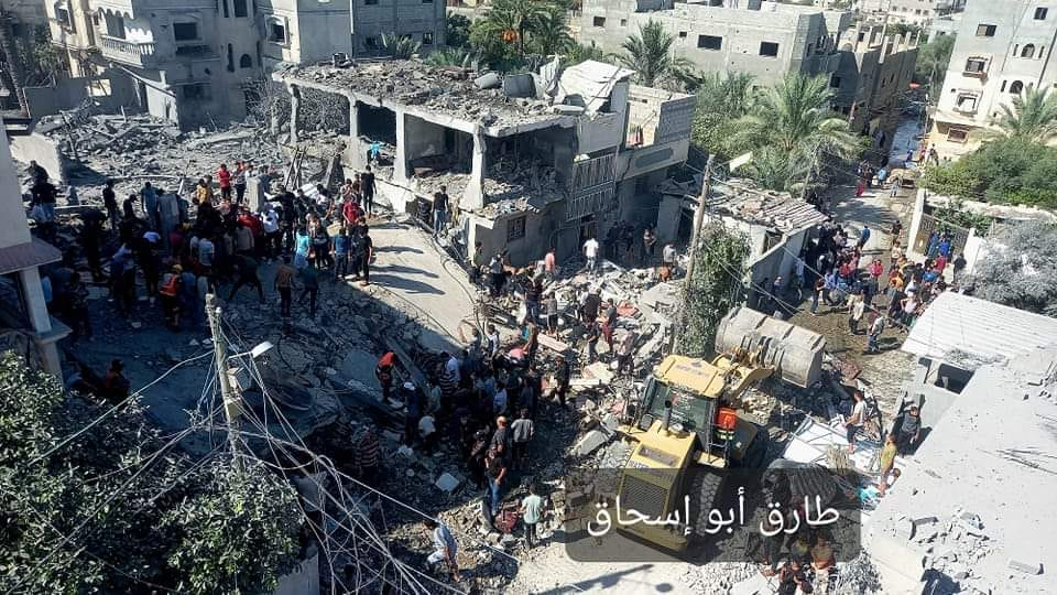 The estimates of those injured varied between 35 and 44 civilians, where 44 injured were reported by a Facebook user Diya Alregeb. Videos and photos were shared of civilians being recovered from the rubble and brought to Nasser Hospital. Women and children were reported among those injured. Moreover, videos showed large amounts of smoke emerging from the buildings after the airstrike hit the homes. People were also reported to still be stuck under the rubble as large crowds gathered to help in efforts to dig them out as per photos from Atef Abu Al-Ala’s post.