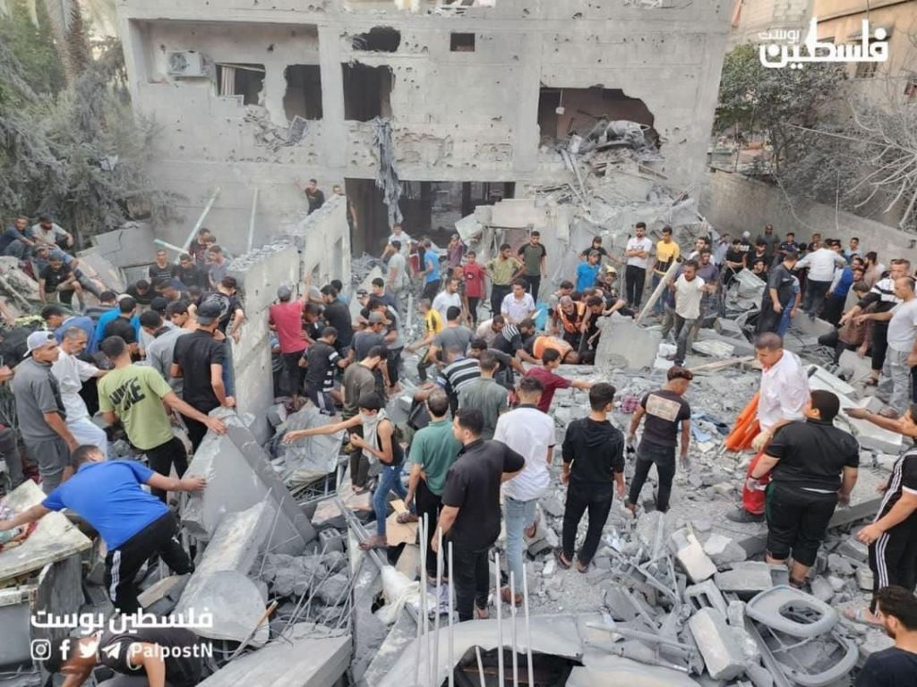 Multiple news outlets, including journalist Abdul Rahman al-Ebadale, reported ten civilians dead, 22 injured and a further 18 Palestinians missing under the rubble, with ambulances and civil defence crews attempting to access the injured. Journalist Ahmad Qudeih put the number of killed at 12. Due to the possibility that two of the deceased were militants, the minimum civilian deaths has been recorded as eight.