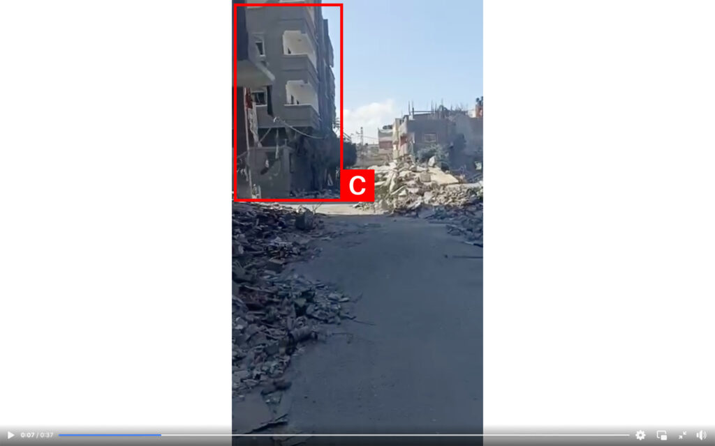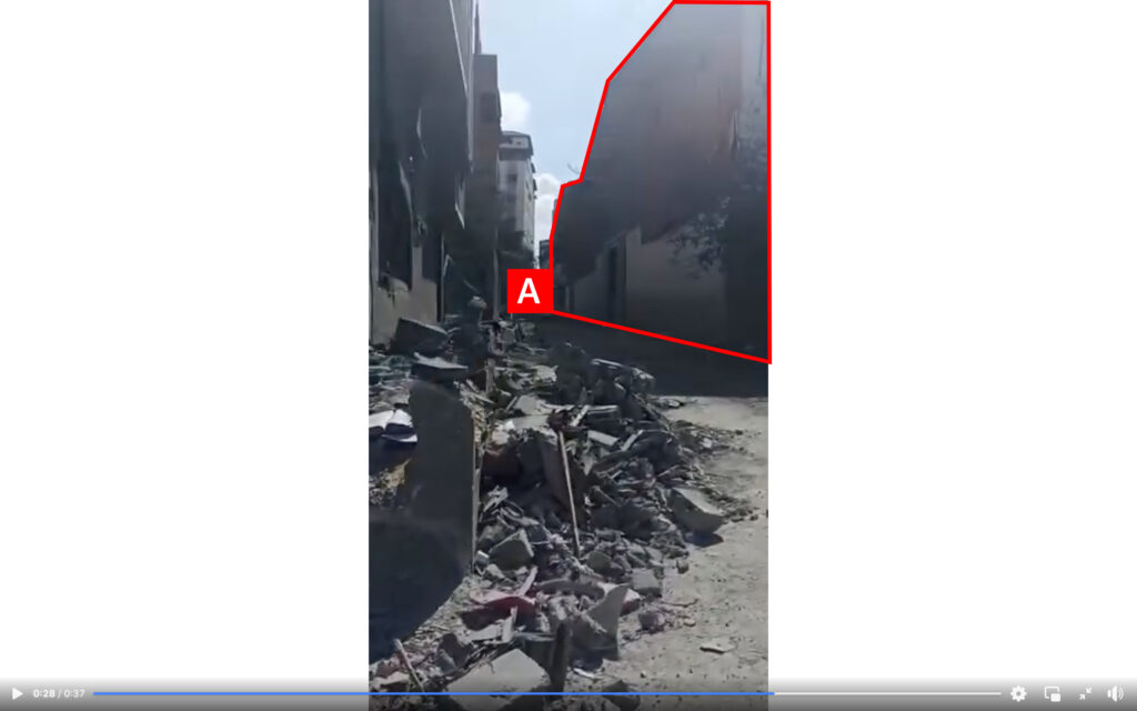 In parallel, the Interior Ministry in Gaza and the Embassy of the State of Palestine in Tajikistan corroborated this version of events in a Twitter/X post, the latter sharing a video depicting the scenes of chaos shortly after the airstrike. The video shows the collapsed building and the street covered in debris and thick dust, while men attempt to remove people from the rubble. While one person is shown carried in a white body bag, two others – a man and child – were transported by stretcher or carried. It is unclear whether they are deceased or severely injured.