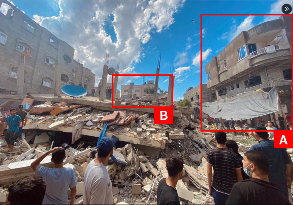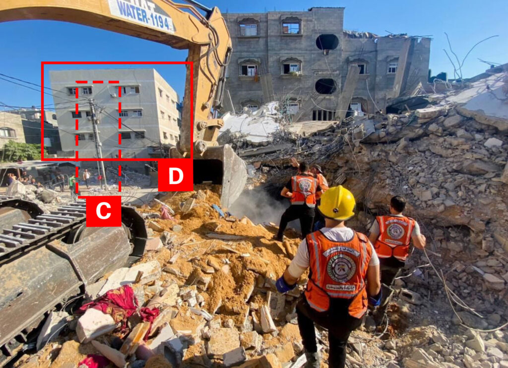 On October 9th, 2024 the Airwars Investigations Unit, along with Sky News, published an investigation geolocating and matching airstrike footage released by the Israeli military with incidents in the Airwars archive. In total, Airwars’ team identified 17 strikes leading to civilian harm from the first month of the war, of which the Israeli military itself had published footage. This strike was among the 17. As such this incident has been reclassified as a declared Israeli strike, rather than a likely one.
