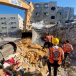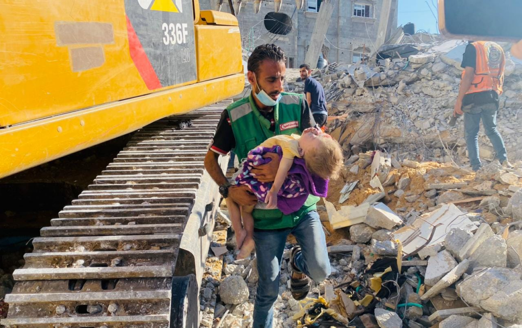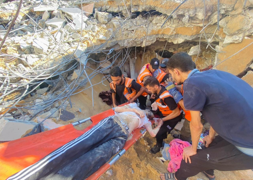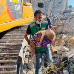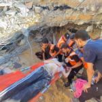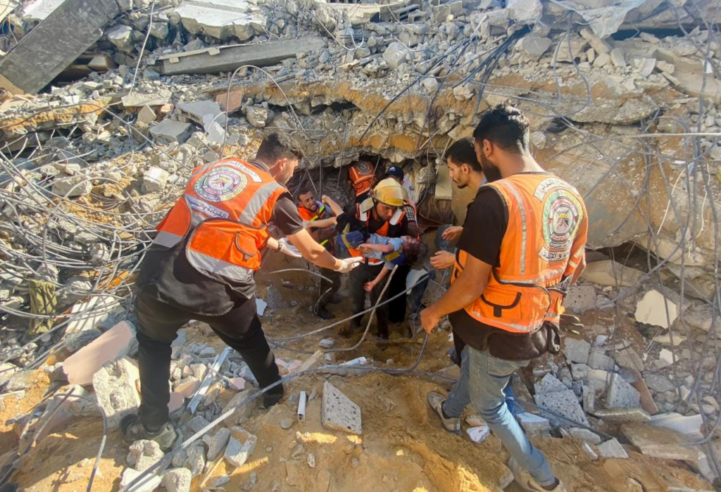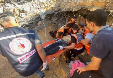 Several news outlets and journalists shared images depicting Emergency Medical Services pulling up severely injured children from beneath the rubble. One image depicted the acute infrastructural damage caused by the attack, which completely collapsed the multi story building.