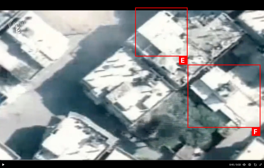 Reports of the incident mention the al Alami neighborhood (العلمي) in Jabalia (جباليا). Analysing audio-visual material from sources, we have narrowed the location down to the following exact coordinates: 31.537166, 34.500485. The Airwars team matched these exact coordinates to a screenshot taken at 0:10 of the strike video shared by the IDF to Twitter/X (see strike reports below).