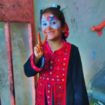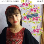Muhammad Abu Al-Baraa Zaqout posted a memorial to his “little daughter” Aisha Muhammad Zaqout who “was not more than 8 years old” when she was killed after they had been displaced to the Hassan Salama School, along with an image of a happy Aisha in a traditional Palestinian dress with her face painted.