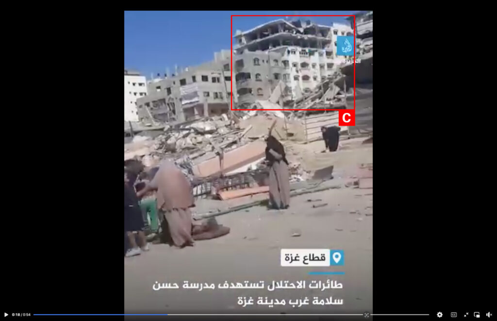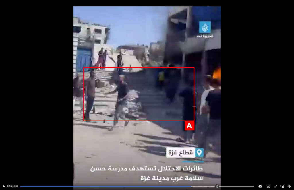 Safa Press Service first reported the alleged airstrikes on the Hassan Salama School and the Al Nasr school in the Al Nasr neighbourhood, west of Gaza City. The article initially reported the deaths of six people as well as the injuries of many others. At 4:00PM on the same day, a tweet by account @mutaz_kawamleh announced that there had been 25 deaths as a result of the airstrike on the Hassan Salama School, while a post from Sahat News put the number of people killed at 27. The tweet included further video footage of people fleeing the destroyed building. Airwars was able to identify the names of 26 people who were killed in the airstrike based on testimonies posted to social media.
