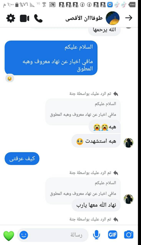 A 19-year-old girl named Tasneem Saeed Yousef Al-Moutawaq was killed alongside her younger sister and brother, 14-year-old Rawan Saeed Yousef Al-Moutawaq and 12-year-old Yousef Saeed Yousef Al-Moutawaq – as well as another brother, whose age is unknown, called Moatasem Saeed Al-Moutawaq.