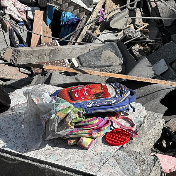 Multiple images showed the devastation after the strike: a very graphic photograph included shows a volunteer carrying the remains of a human body. Other images showed the left-behind belongings of the children, including backpacks and a cartoon balloon.