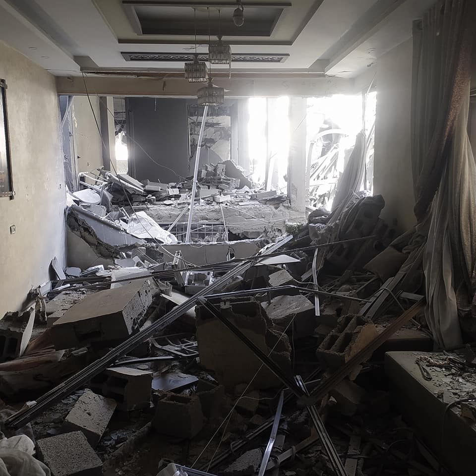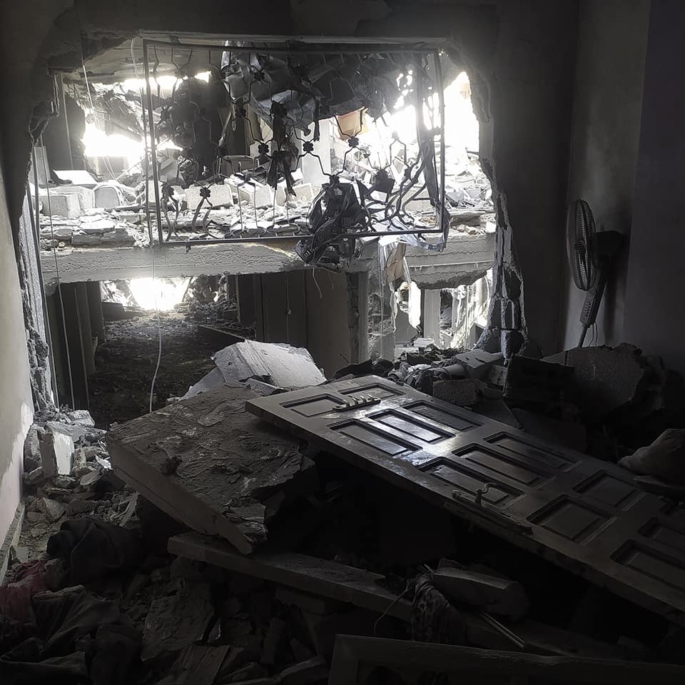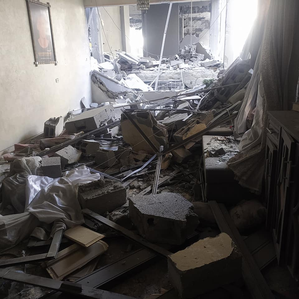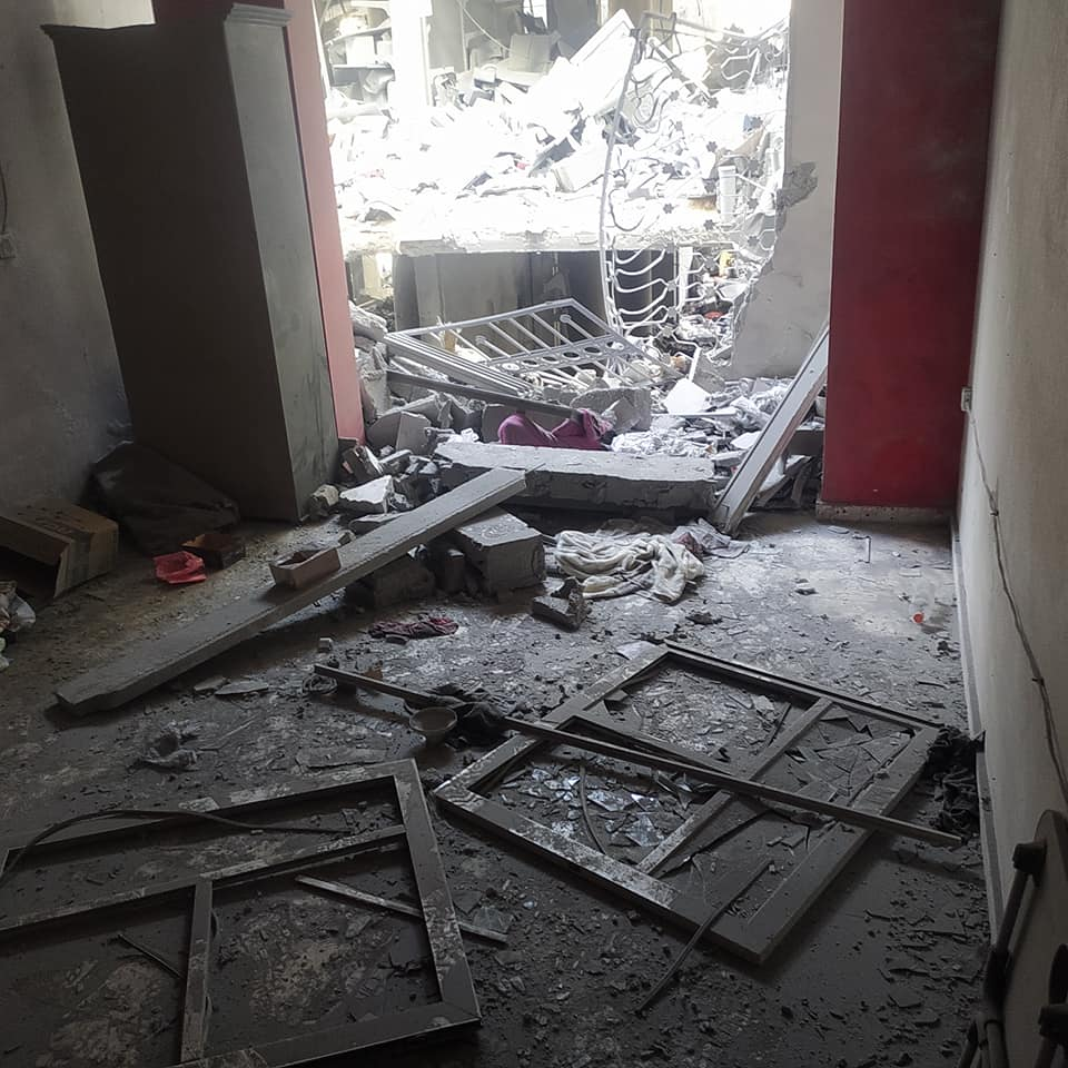 Momen Al Ashqar, a cousin of Islam Omar Al Ashqar, reported that all of his mother’s family was injured by the strike that killed his relative. Images posted by Hosam Al Ashqar to Facebook show that the strike caused extensive damage to a residential building.