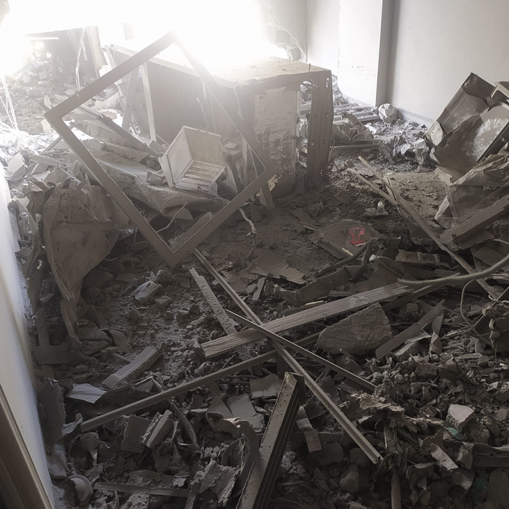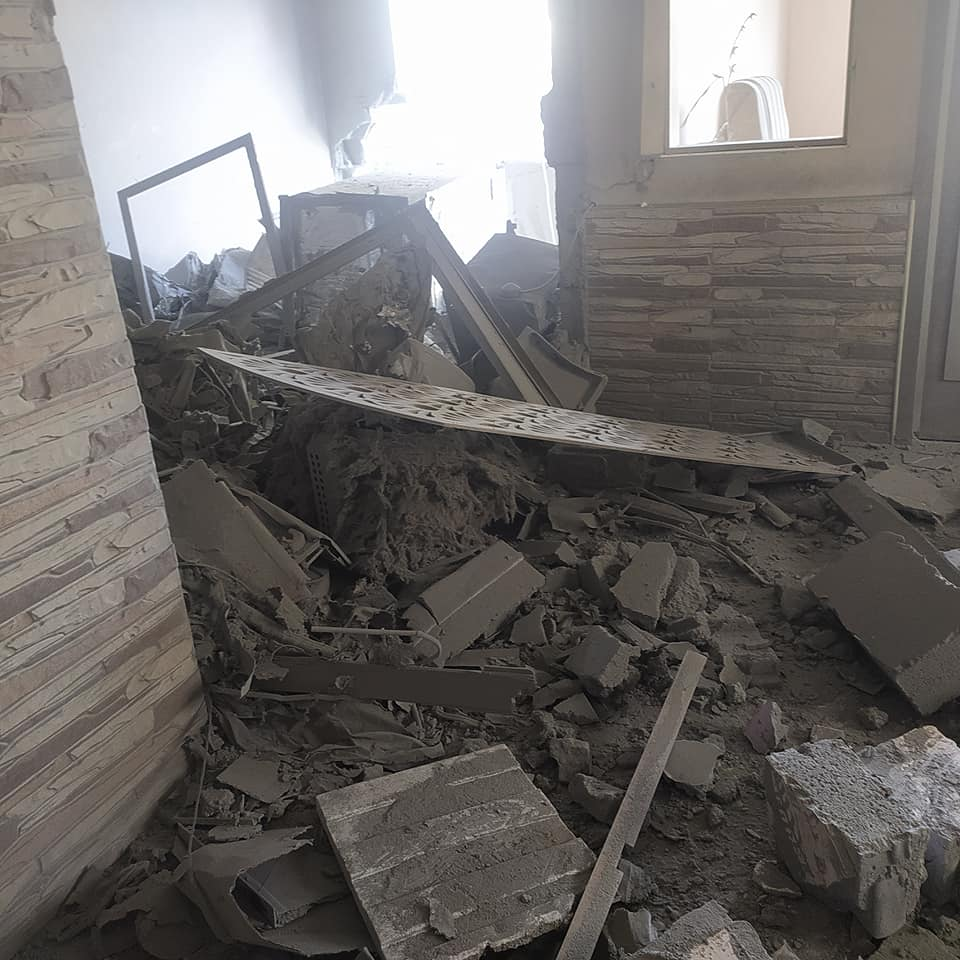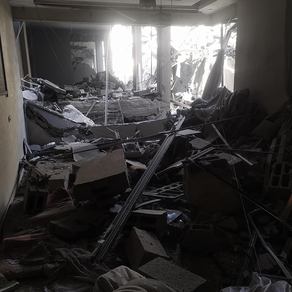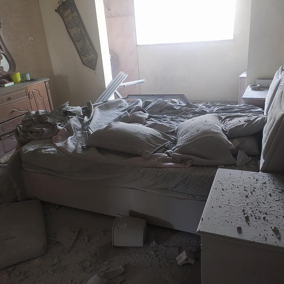 Momen Al Ashqar, a cousin of Islam Omar Al Ashqar, reported that all of his mother’s family was injured by the strike that killed his relative. Images posted by Hosam Al Ashqar to Facebook show that the strike caused extensive damage to a residential building.