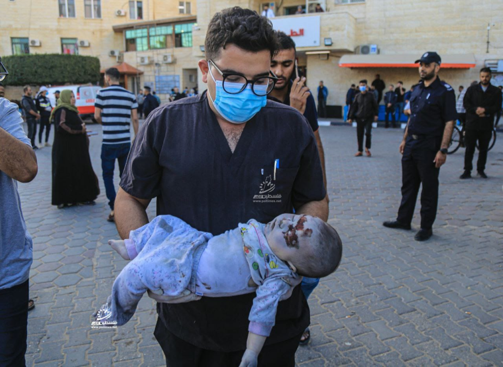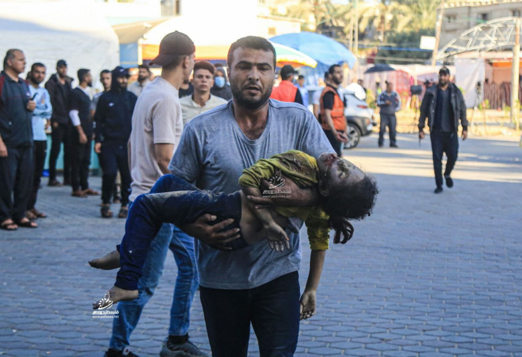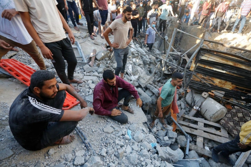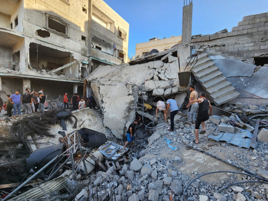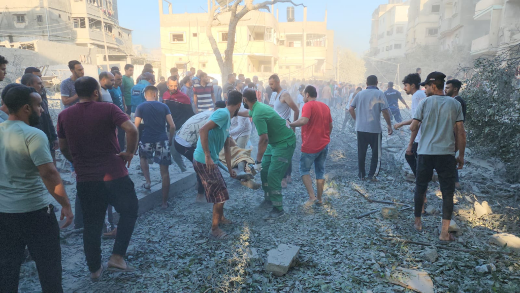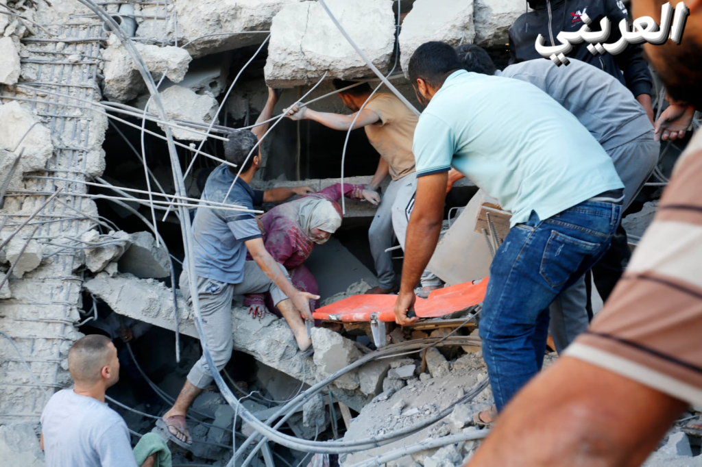 The aftermath of the strike was posted by Palestine Dialogue Network (@paldf) and Abu Kareem News showing the building reduced to rubble with local civilians and rescue workers sorting through the rubble. A post by Nuseirat Panorama showed the arrival of injured civilians, including a young man and an elderly man, at a local hospital while images posted by Nader Saad Abdul Haseeb show a woman with an injury to her face. Graphic images of a dead infant and a dead child arriving at the hospital were also posted by Nuseirat Panorama.