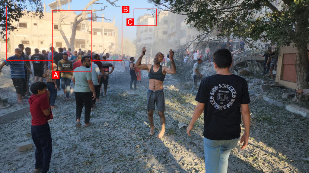 On October 9th, 2024 the Airwars Investigations Unit, along with Sky News, published an investigation geolocating and matching airstrike footage released by the Israeli military with incidents in the Airwars archive. In total, Airwars’ team identified 17 strikes leading to civilian harm from the first month of the war, of which the Israeli military itself had published footage. This strike was among the 17. As such this incident has been reclassified as a declared Israeli strike, rather than a likely one.