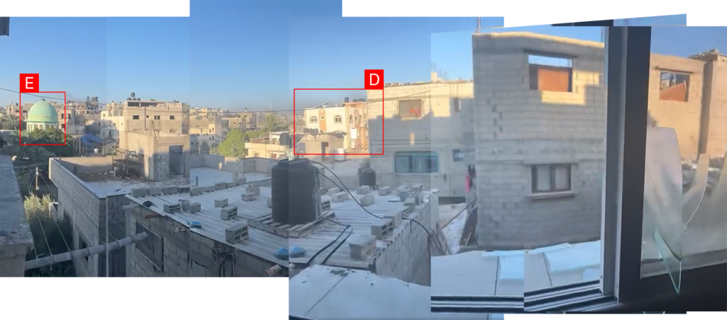 Reports of the incident mention a residential building being struck in the vicinity of Al Aqsa Martyrs Hospital (مستشفى شهداء الاقصى) within Deir Al Balah (دير البلح). Analysing audio-visual material from sources, we have narrowed down the exact location of the strike to these coordinates: 31.418431, 34.355579. The Airwars team matched these exact coordinates to a screenshot taken at 0:12 of the strike video shared by the IDF to Twitter/X (see strike reports below).