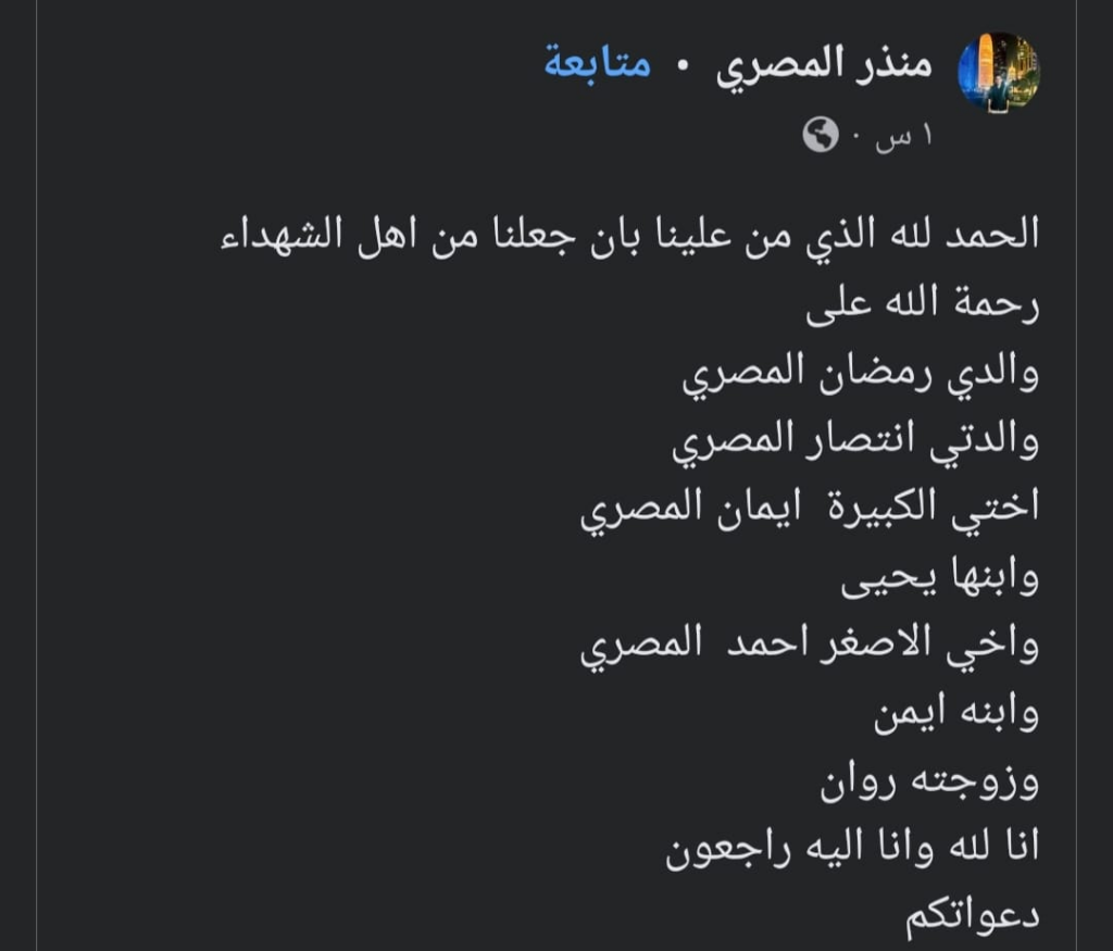Family members and friends of the Al-Masry wrote heartfelt tributes on social media, where they described their grief.
