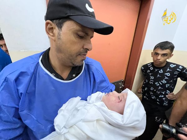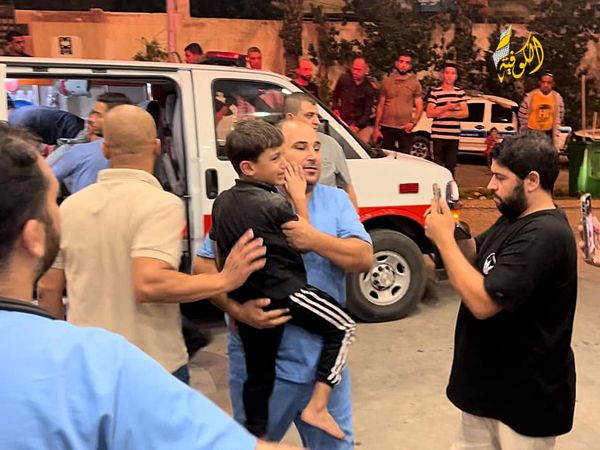 Amr Tabash also posted a video of Malik Hisham al-Zinati’s body arriving at Nasser Hospital in an ambulance, he can be seen wrapped in a blanket and being held by a paramedic.