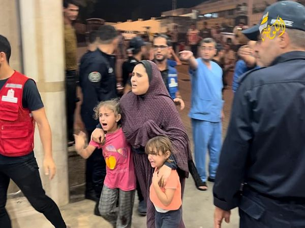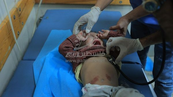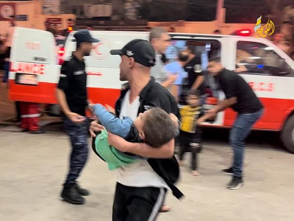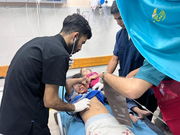 In a series of images posted by Palestine Now and the photographer, Amr Tabash, at least ten different children can be seen arriving and being treated at Nasser Hospital, many of them carried in, some crying and others limp.