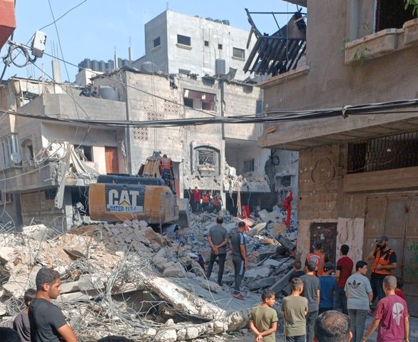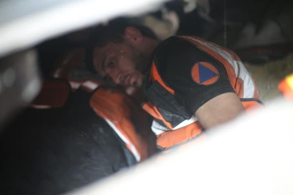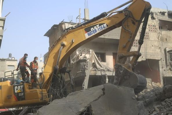 The Palestine Civil Defense posted images of the Civil Defense rescuing the injured from the rubble of the two houses reportedly hit in this airstrike, and one image shed that they are using a digger to get under the rubble because of the scale of damage. The civil defense workers are pictured looking for people in the dark space under the collapsed building. The Palestinian Ministry of Interior added that medical services crew were at the scene, accompanied with pictures, and it is clear from one that a building has been reduced to rubble illustrating that the whole walls have collapsed.