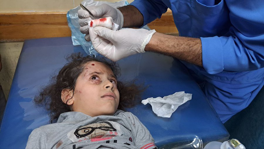 The Palestinian Ministry of Health posted that the little girl Hor Ahmed Abu Al-Qumsan was in the Al-Shifa Medical Complex for treatment of her injuries, and the picture of her shows injury to the side of her face and she is dressed in bright clothes. The post added that she had miraculously survived the alleged airstrike, and that she was the only survivor in her family.