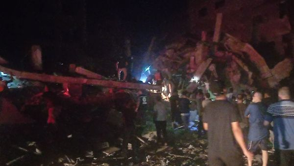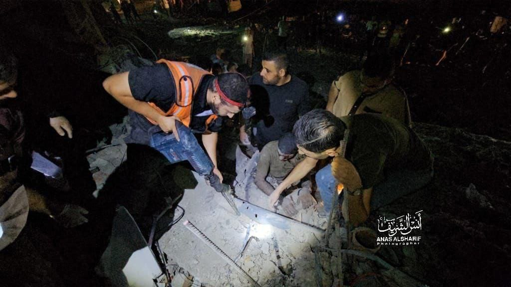 Photos indicate the strike took place at night as the rescue crews were operating with flashlights and in the dark.