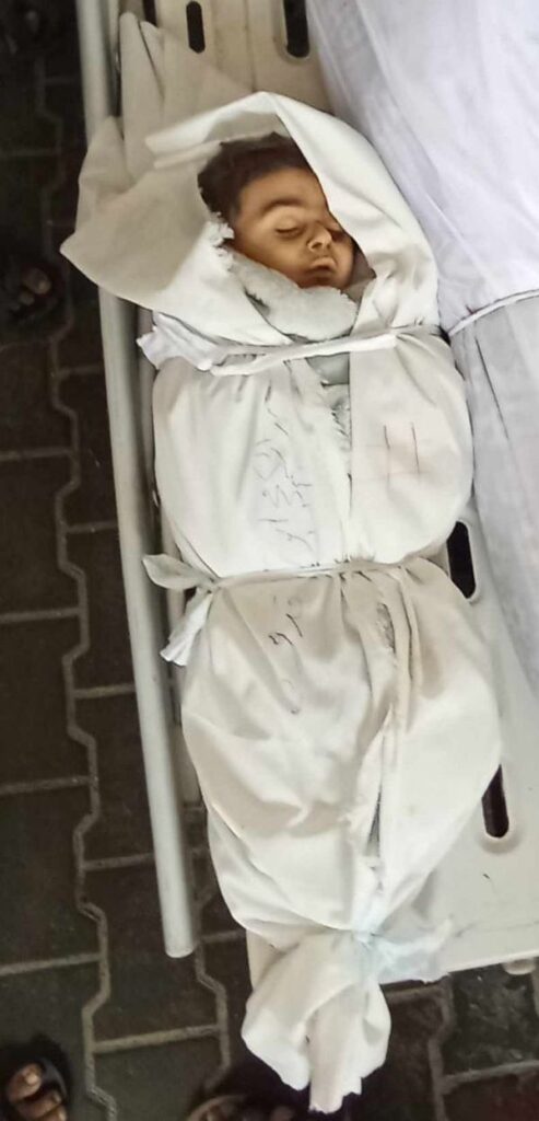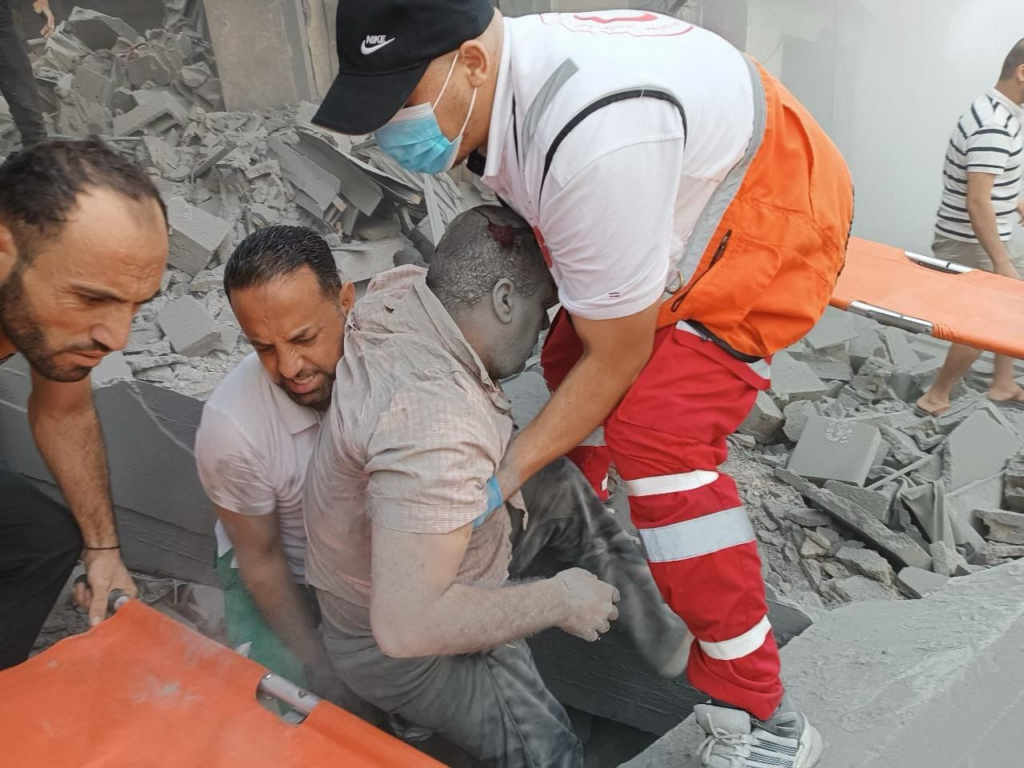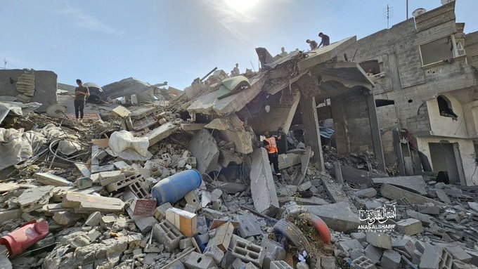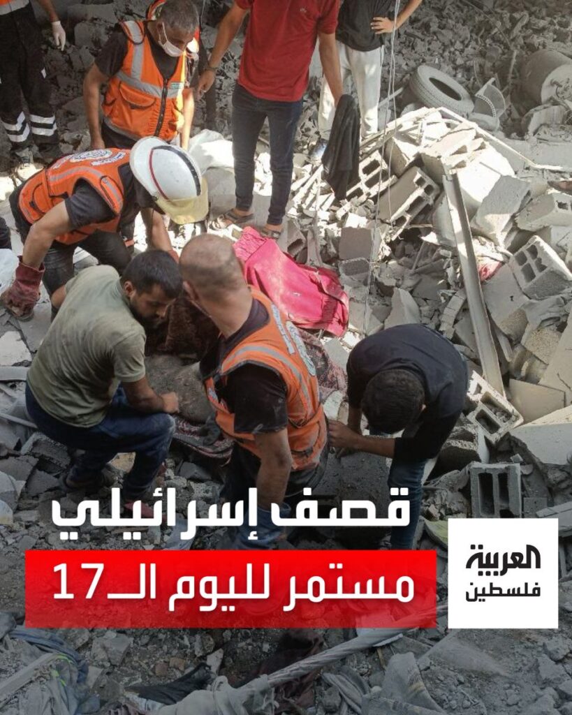 Photographs shared by the Gaza Police and Northern Gaza Governorate page on Facebook show medical teams, civilians, and Civil Defense crews recovering a body from the rubble of the completely collapsed building, as well as “a number of injuries”; one of the images showed a heavily wounded and bleeding young man being helped by civilians. The Medical Services Gaza Strip page shared similar images saying, “The ambulance and emergency teams of the General Directorate of Military Medical Services found a dead body…and a number of injuries,” which was corroborated by local and social media such as al-Watan. Twitter/X user @hanyelkordi noted that there were a “number of casualties and survivors under the rubble,” while @PSLK1154 stated that there were “martyrs and injuries.” @EyeonPalestine shared a video of the destroyed building, alleging that the bombing was done by “Israeli warplanes.” A disturbing video posted by Mostafa Mohammed Sabaa showed rescue workers pulling out the remains of a killed civilian from the rubble, before wrapping them in a sheet,  adding the caption, “O Lord, grant us forgiveness and patience/Cruel scenes from the house bombing of the [Arooq] family in the middle of #Jabaliya camp.” A number of condolence posts from family members reported that two people were killed in the alleged strike.