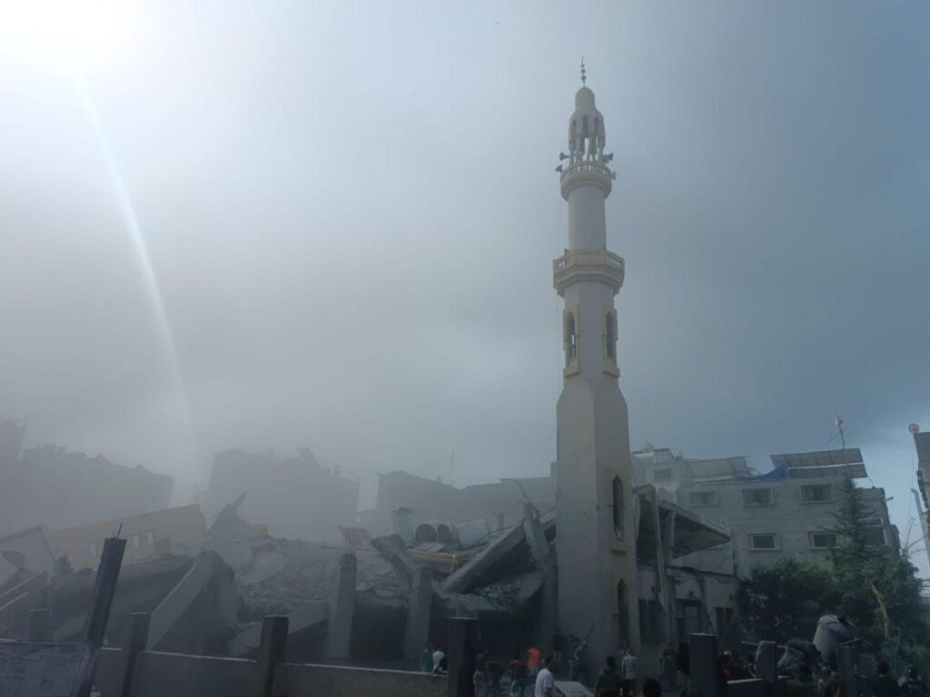 Shehab Agency reported on the destruction of the mosque, adding that the strike caused “injuries among the mosque’s neighbours.” Nabaa Media Group reported the mosque was bombed with a “series of missile attacks that resulted in dozens of casualties, including martyrs and wounded,” sharing a video of two massive plumes of smoke rising up from the site of the strikes in a distance. A Twitter/X user @fo_er stated that “in the last hour, two mosques were destroyed,” while @M0SC0W0 posted that the mosque was “completely destroyed,” adding that it was located “in the middle of an area crowded with Palestinian civilians.” Mohammed al-Najjar posted that the bombing also led to the “destruction of citizens’ homes.”
