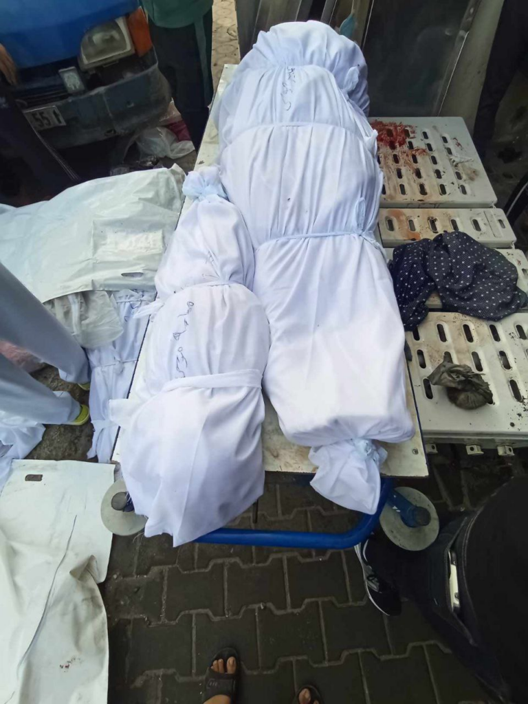 A post from Khaled Al-Batsh provided the names of 11 of those killed: 32-year-old Halima Saleh Al-Batsh, 23-year-old Yasmine Saleh Al-Batsh, 20-year-old Bisan Saleh Al-Batsh, 16-year-old Israa Saleh Al-Batsh, 27-year-old Heba Saleh Al-Batsh, 7-year-old Hamza Rabie Al-Batsh, 4-year-old Tala Rabie Al-Batsh, 35-year-old Aed Muhammad al-Mahrouq, his son 13-year-old Maslama Aed al-Mahrouq, his daugher 8-year-old Bilsan Aed al-Mahrouq, 25-year-old Muhammad Muhammad al-Shorbaji.