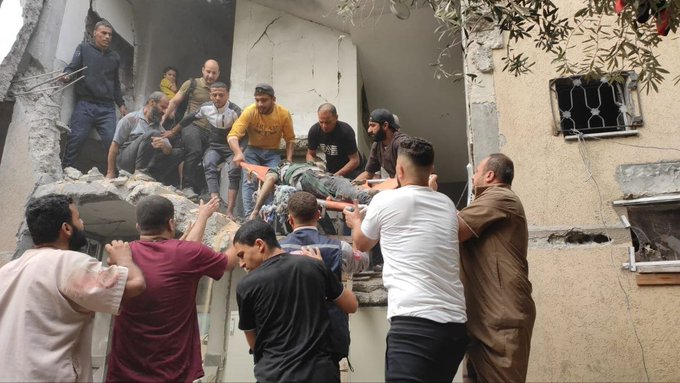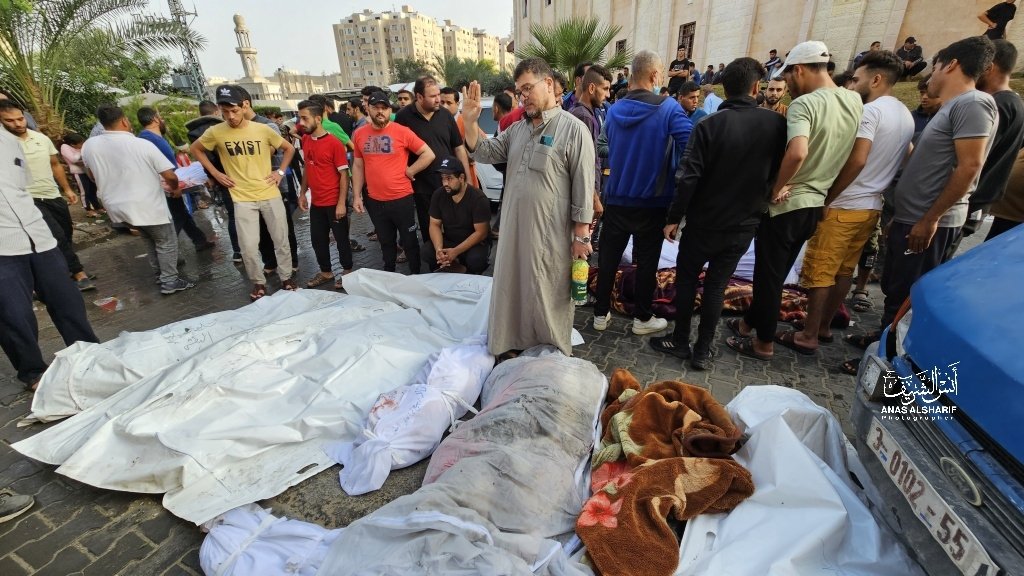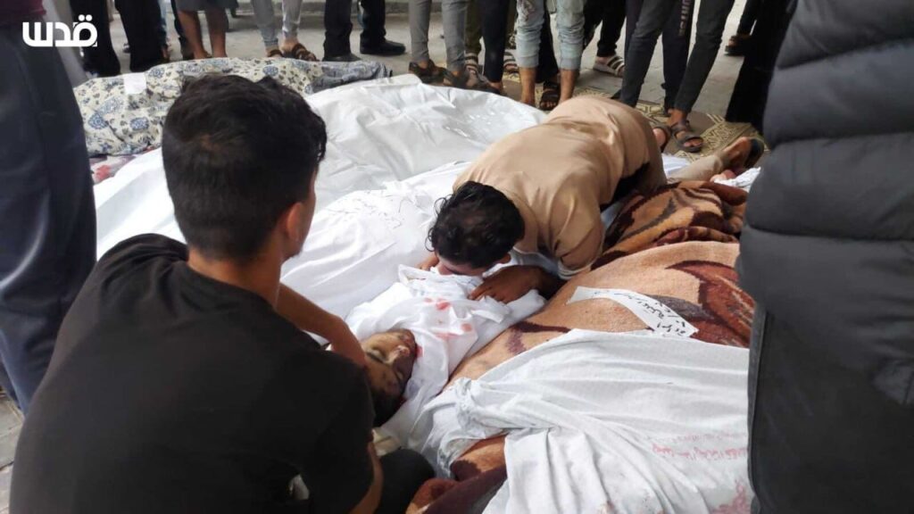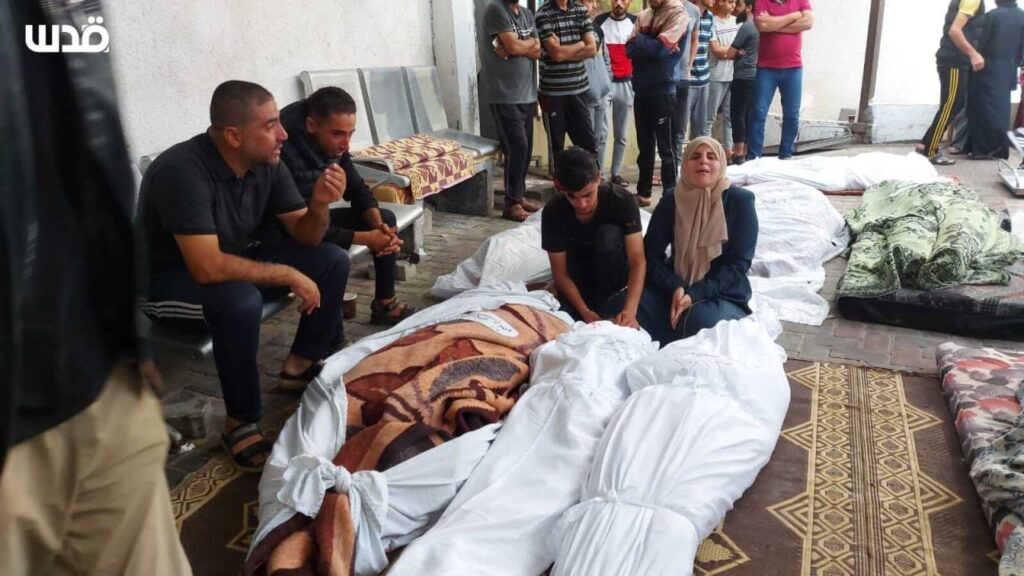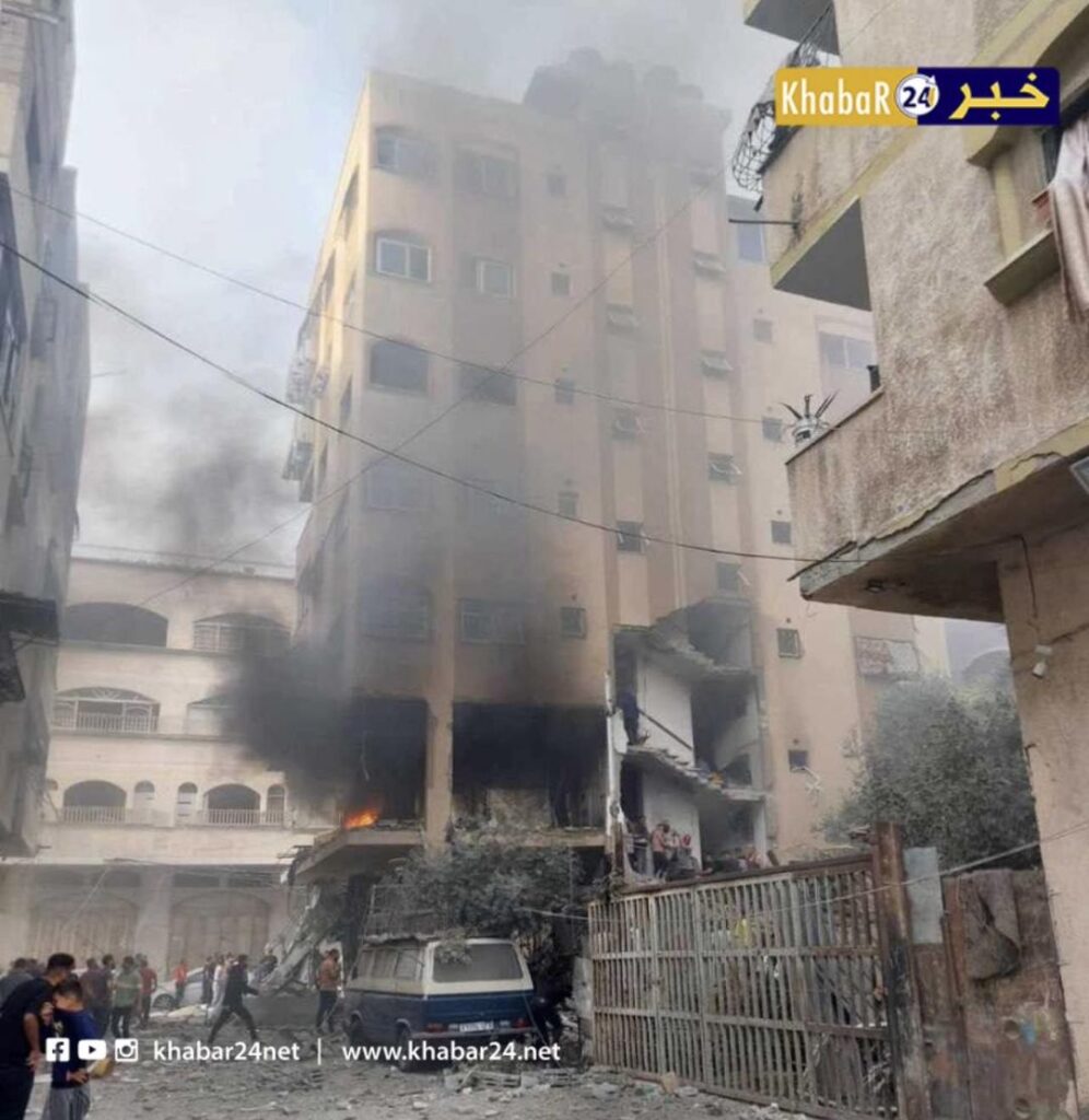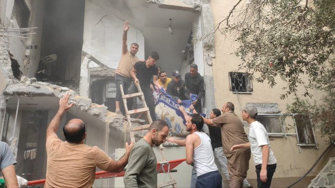In an image posted by the Twitter/X account @SalemRopp, a man is shown grieving victims, covered and wrapped in cloth, in the aftermath of the strike. According to PNN News Network, which included images of the bodies of at least eight victims, the Al-Batsh family’s home was located near Nassar Junction in Jabalia and at the time of reporting, victims were still under the rubble. @ShehabAgency added that the strike occurred at an apartment in Rayan Tower. Journalist Tayseer Qudeih specified that the home belonged to Saleh Al-Batsh.