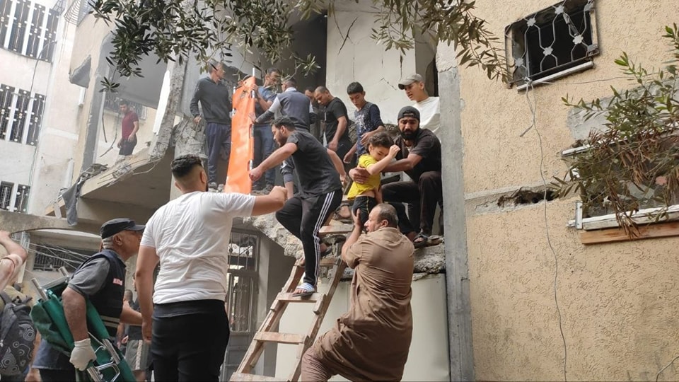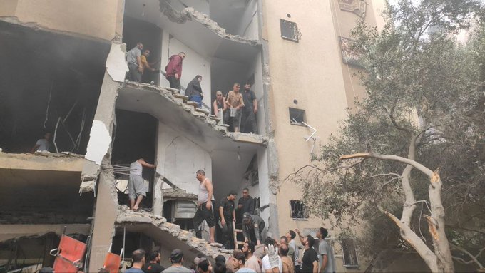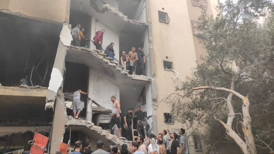 Several images have been uploaded of the aftermath of the strike onto Facebook. In a post by Gaza Days, images have been shared which show a group of men assisting survivors to leave the building, which has been completely exposed due to damage to its exterior wall.