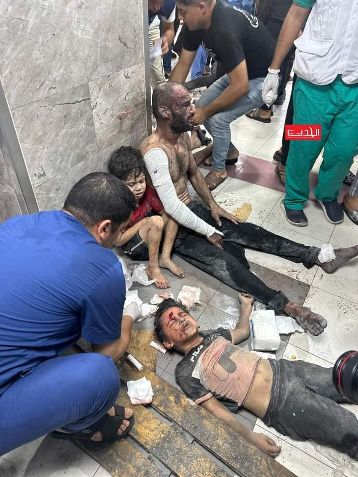 At 11:02 am on October 23, the Palestinian Press Agency (Safa.ps) reported “martyrs and wounded in an Israeli bombing of a house for the al-Diri family in the Al Sabra neighborhood, south of Gaza.” According to @Paltodaytv, the casualties were the “result of [Israeli] aircraft targeting the Al Iman Mosque and a home for the al-Diri family.” On Twitter/X, @wa1tii shared a video with the caption “[the Israeli military] committed a massacre against our neighbors by targeting the al-Imam Mosque. This targeting led to dozens of injuries and martyrs.” The clip, geotagged in the Al Sabra neighborhood, shows a plume of smoke and dust rising above a residential area. A video posted on Facebook by the account ‘Aldurar for Hijabis’ with the text “the Israeli [military] commits a massacre after bombing the Al Iman Mosque in Sabra” shows hospital workers frantically treating injured patients, most of whom are children and infants. Pools of blood cover the floor. Photos shared on Facebook by Marwan Zulum also show casualties from the alleged strike on the al-Dairi home as relatives and medics desperately tend to the wounded, including numerous children. A Facebook account for the ‘al-Diri clan / Palestine and the diaspora’ shared some of the same photos from the hospital. Though an exact account of injuries has not been made explicit, at least 10 people appear visibly wounded in videos attached to sources, including three children and one man.