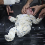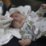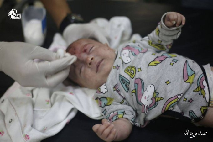 @PalinfoAr tweeted that two injured infants came to the hospital, and posted the picture of one of them. The images of the injured baby wearing unicorn pyjamas with blood on their face being treated were also shared by Twitter/X accounts @Motazpress and @Yemeni_monadel.