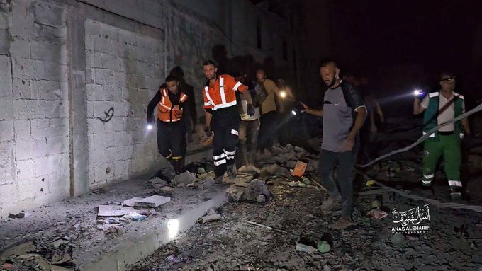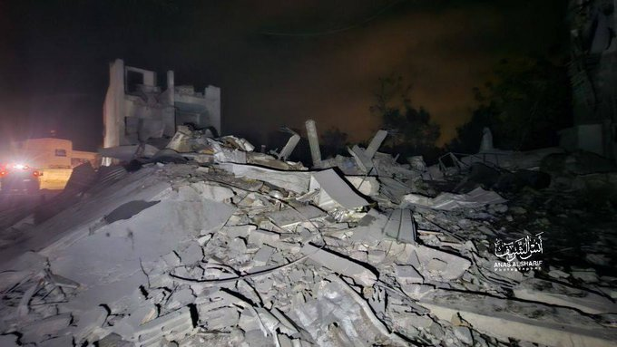 Photos shared on social media showed “widespread destruction” including the building being reduced to rubble and search and rescue teams as well as men with flashlights searching for people. A video shared by Al-Jazzeera Palestine and Twitter/X user @Fatma_Kh_ showed rescue efforts in the darkness and a victim being transported on a stretcher.