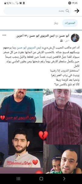Many friends and family posted in mourning for Rafiq Nassim Abu al-Anzain, including his cousin Ahmad al-Hirsh, who wrote in a Facebook post that Rafiq had visited them only that morning to see his mother who was staying with them. Ahmad Aziz wrote about Rafiq as “the good-natured neighbour and friend.”