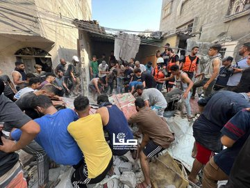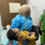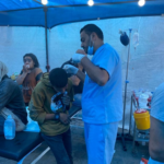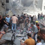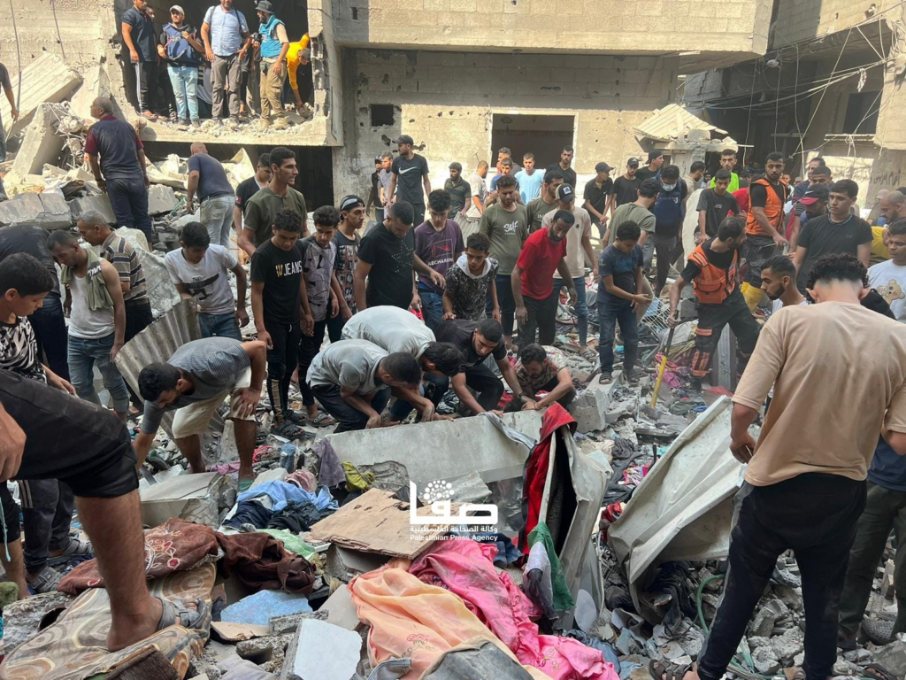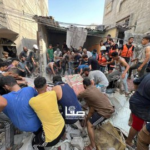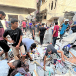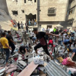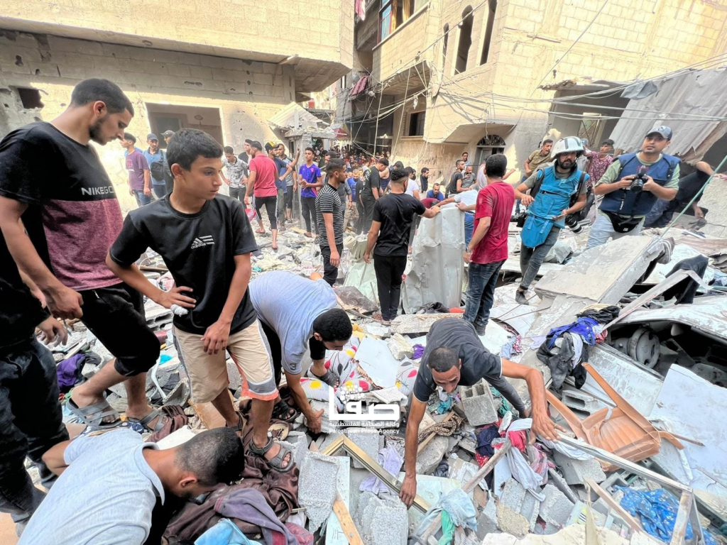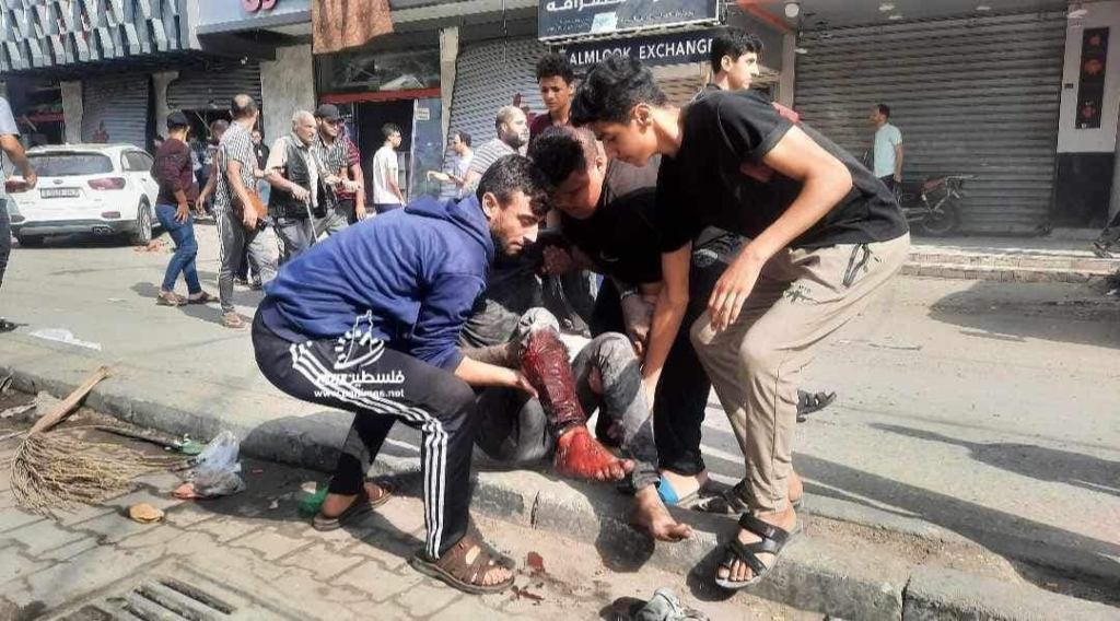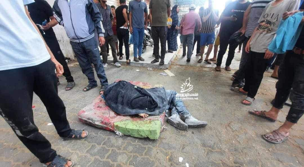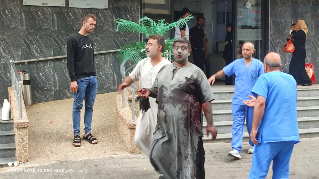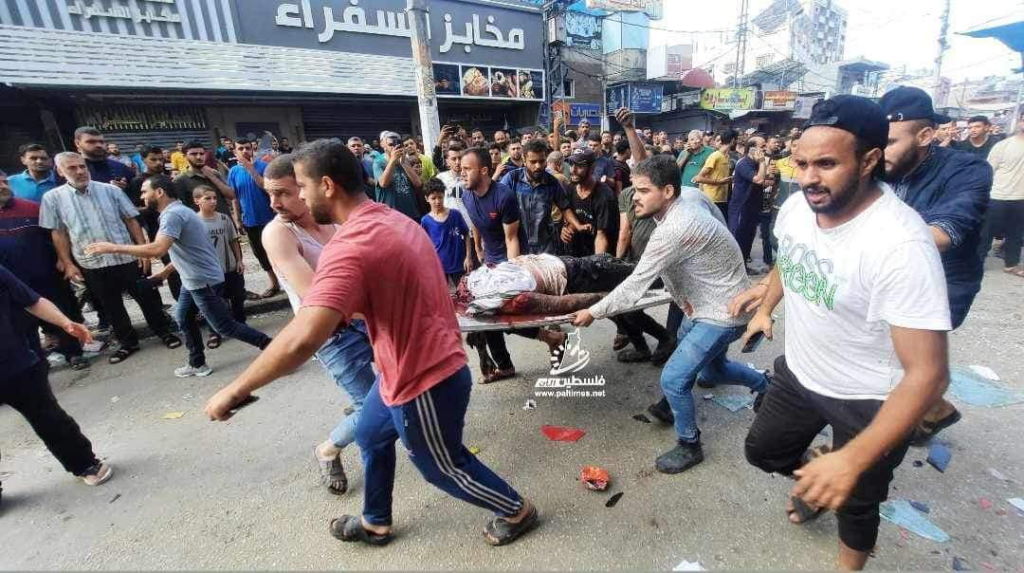 On Facebook, Sanaa Mahmoud, Abu Osama Aljazaairi Almorabet, Mohammad Ismail al-Hour, Adam Nawas, Hossam Youssef, Abu Jameel al-ashqar and Khaleel Alghaffari shared images and video compilations documenting the immediate aftermath of the strike, illustrating its destructive impact on the infrastructure where citizens “bought their household supplies,” according to Emad J. Abushawiesh. Their posts captured moments of chaos and human suffering, including one of a dazed man–possibly the injured Dr. Mahmoud Hamad– stumbling outside of a hospital, covered in dust and blood, and other scenes of children being rescued from under the rubble and hurriedly transported to ambulances bound for al-Awda Hospital in al-Nuseirat. Ibrahem Elian reported that some of the casualties sustained “serious injuries” necessitating “amputations.” Additionally, Jenine News reported that the airstrike targeted a commercial complex housing a humanitarian aid distribution point, as well as “large numbers” of shoppers and displaced individuals.