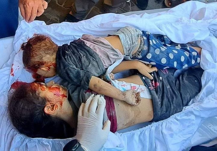 Another Facebook user Mohammed Khaleel, shared a graphic image of the bodies of the young sisters Faten and Masa.