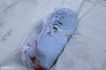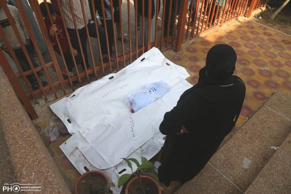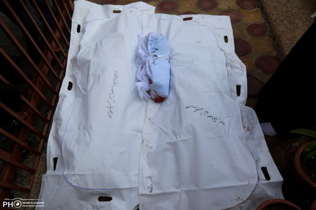 Middle East Page reported that the Saqallah family buried more than 50 of its family members in one day. In a video shared on Facebook a large group of mourners gather together as dozens of bodies wrapped in white body bags are carried out for burial. Pictures of the funeral show a blood-stained infant body bag, presumably holding the remains of Mustafa Hani Saqallah.