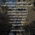 The same post also reported that many other members of the Zorob family had been killed, including Abdullah’s mother, 53-year-old Salwa Musa Ibrahim Zoroub, his sisters Fatima Musa Mahmoud Zoroub and Islam Musa Mahmoud Zoroub, and his brothers 17-year-old Omar Musa Mahmoud Zoroub and 24-year-old Muhammad Musa Mahmoud Zoroub. Mohammed Zorob also stated that three children were killed and all were brothers; this included Abdullah’s nephews Muhammad Ahmed Khalil Zorob (who was 8 or 9 years old), Abdullah Ahmed Khalil Zorob (who was one year old) and Bilal Ahmed Khalil Zorob who was four years old. Murad Zourob also reported on the death of 1-year-old Hamsa Bilal Khalil Zoroub, 12-year-old Hala Bilal Khalil Zoroub and another victim by the name of Hala Bilal Khalil Zoroub. Though similar in English, the names are spelled differently in Arabic; it remains possible, however, that this was a repeated name.