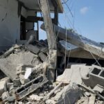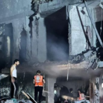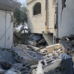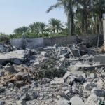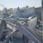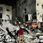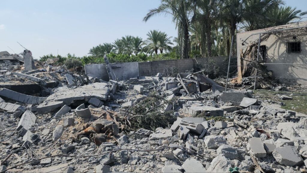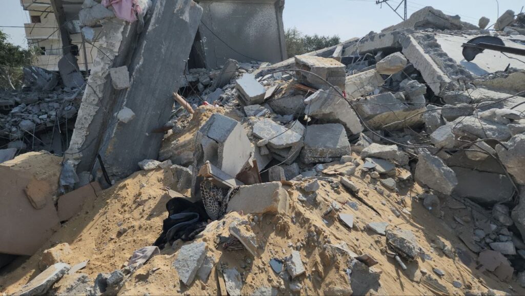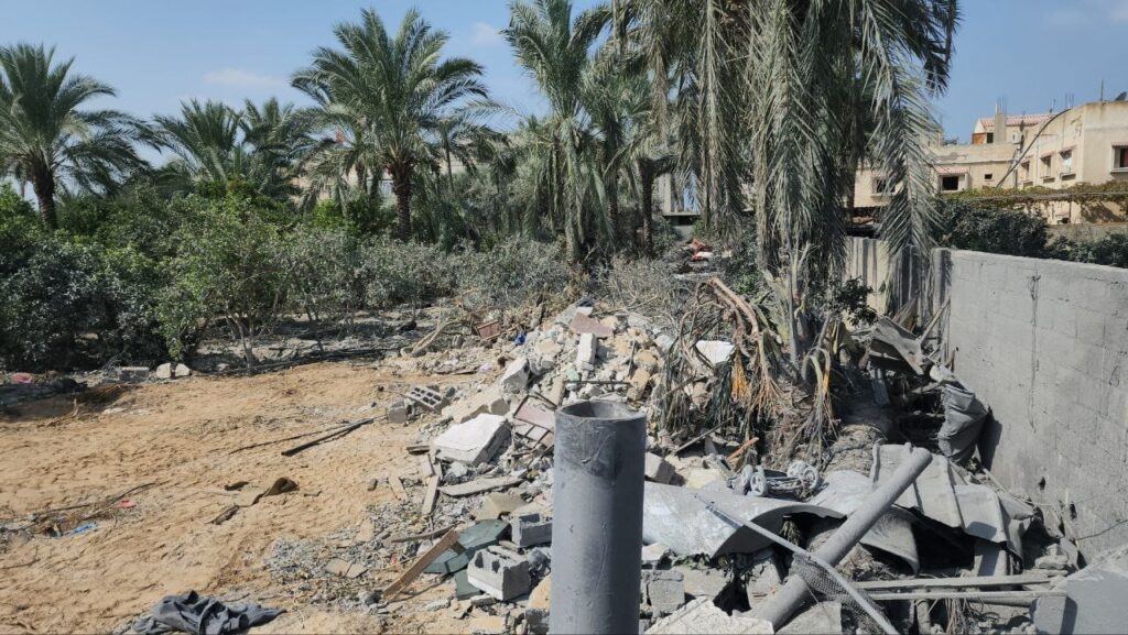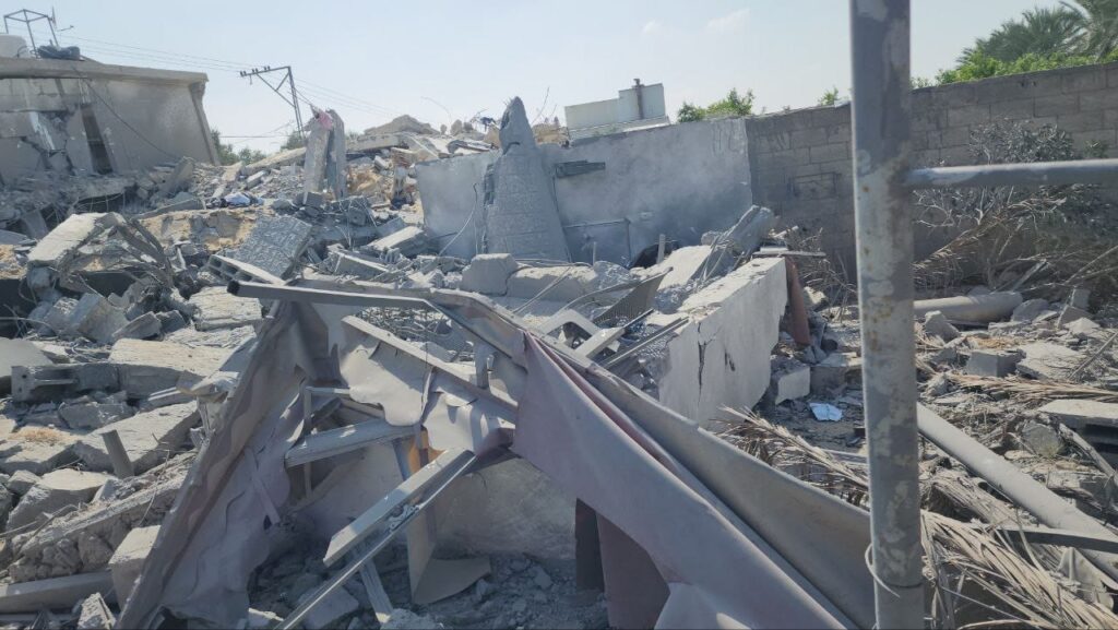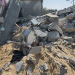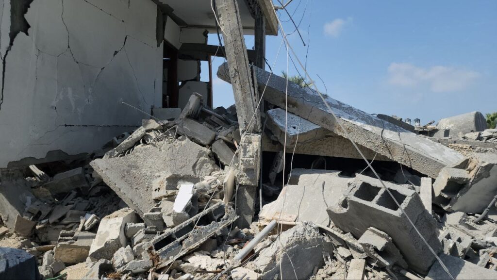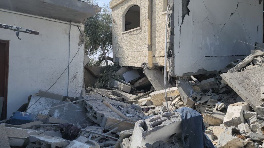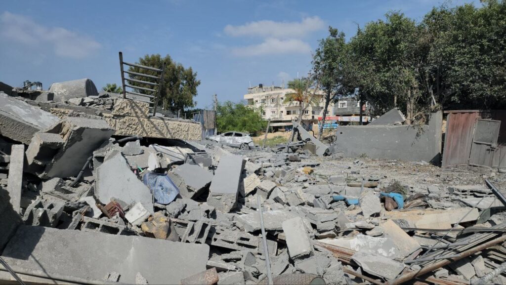 Rahma Hasan posted a picture titled “The Qeshta family’s house on Al-Salat street”, the image was taken at night time and appears to be close to when the alleged strike took place. Multiple men in high visibility vests can be seen, assumed to be medical or rescue personnel. The side of a house has fallen down and the house which is assumed to stand next to was completely reduced to rubble. According to previous sources, this may be the Qeshta family house and the Al-Maghari which was also impacted by the reported strike.