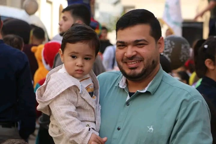 31-year-old Mahmoud Majed Asaad Mushtaha was killed alongside his 25-year-old wife Nasma Saleh Ali Hassouna and their two-year-old son Karim Mahmoud Majed Asaad Mushtaha. Karim Hazem Mushtaha mourned their death along with five others in his Facebook post and shared an image of a smiling middle-aged man in a blue T-shirt holding a small child in his hands, apparently Mahmoud with Karim.