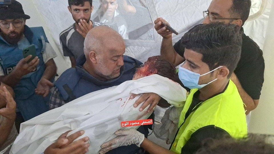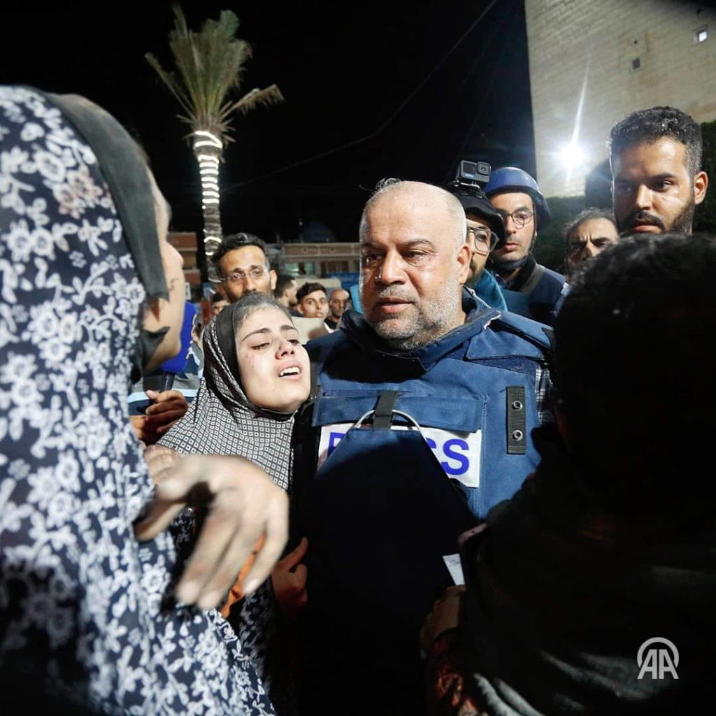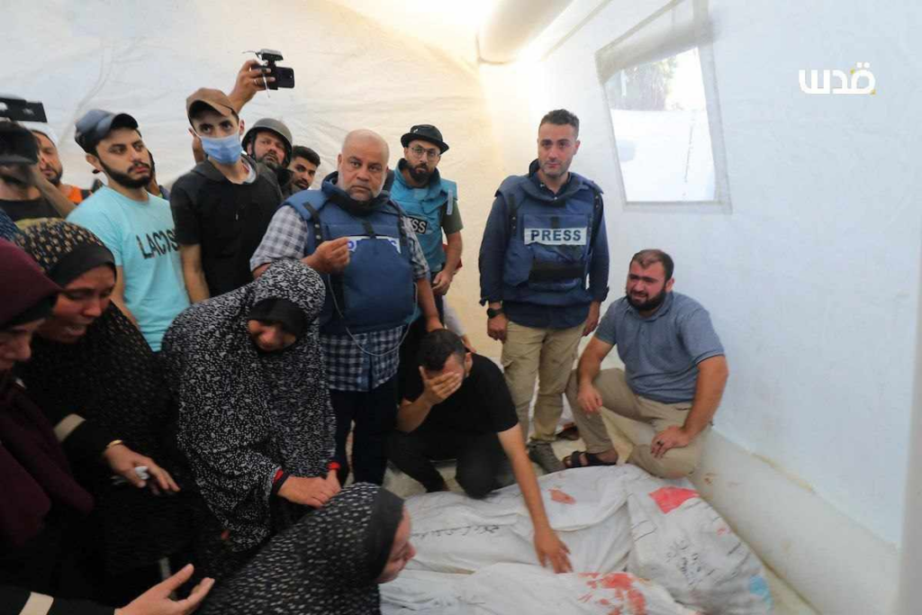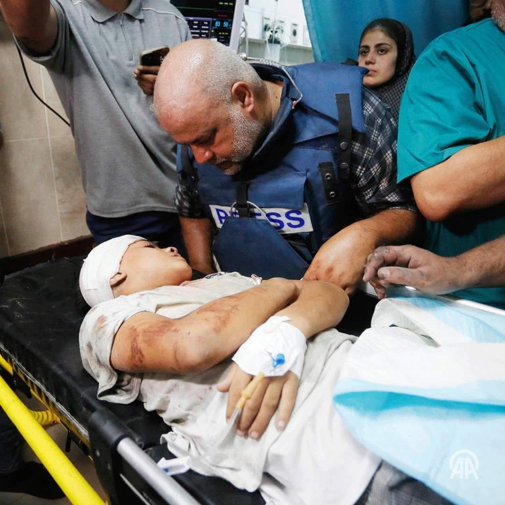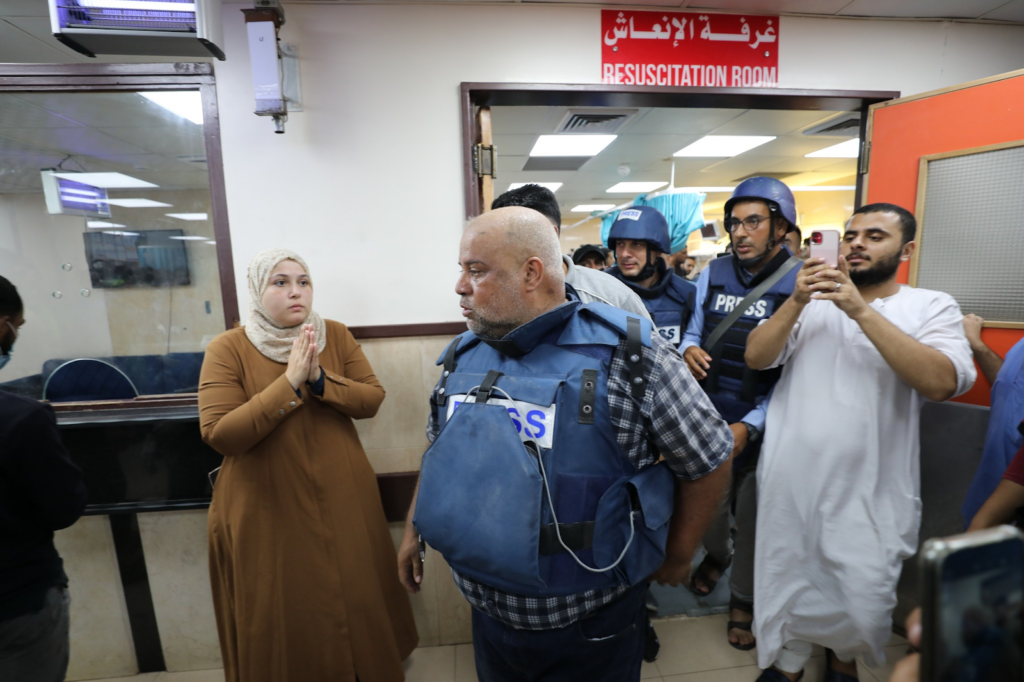 During an Al Jazeera Egypt news report, reporter Hisham Zaquot narrated as footage of Wael Al-Dahdouh walking through the Al-Asqa Martyrs Hospital in Deir al Balah to find his family members was broadcast.
