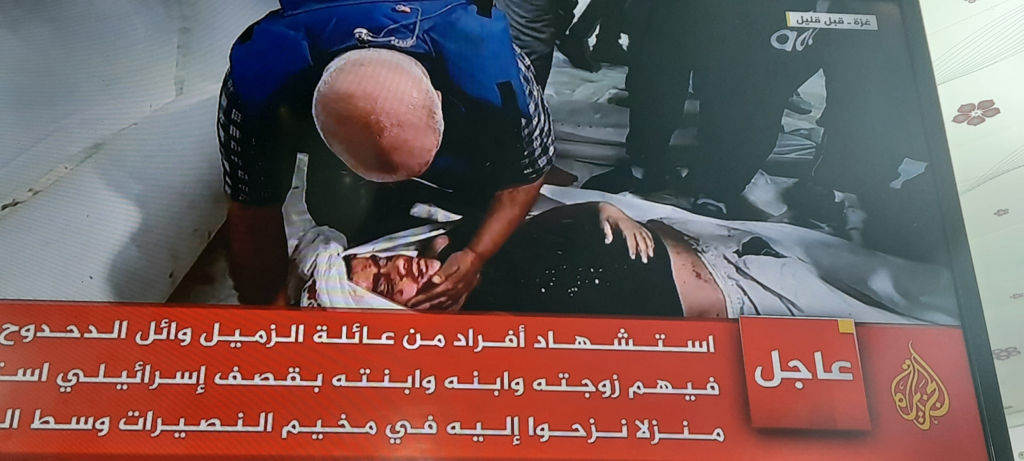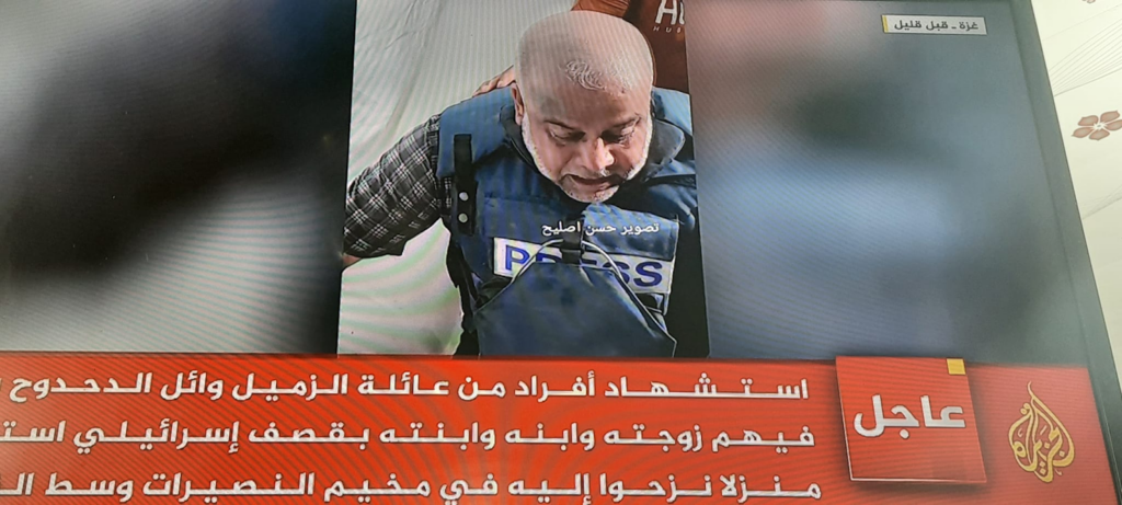 On the day of the incident, Mahmoud Hassan Al-Misrati shared a post on his Facebook account of watching Wael Al-Dahdouh broadcast live from a separate raid in the Gaza Strip moments before discovering the fate of his family, detailing that Wael suddenly cut off from the broadcaster. His voice, however, remained clear and he could be heard talking on the phone saying “Who is who?”.