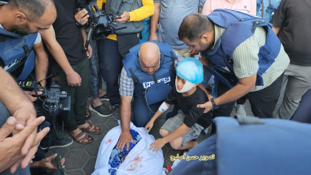In a video posted to Facebook by Al Jazeera Palestine, Wael Al-Dahdouh can be seen crouched behind the body of his deceased son, Mahmoud, according to the video’s caption. The Qatari Al Jazeera network also broadcast images of Wael saying farewell to his son with a number of citizens gathered around him, offering their condolences.