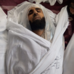 A Facebook reel posted by Al-Arabiya Palestine captured the grief of Qasim’s mother, Hajja Zahdia Abu al-Saud. Overcome with sorrow, she clutches her chest and cries out for her son, resting her head on his shrouded body. Beside her, a woman holding a young boy extends a comforting arm around her as she continues to cry in anguish.